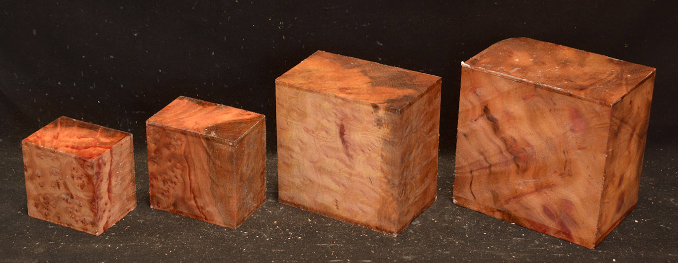 This rare burl is from S.E. Asia and is seldom seen on the world market. It is fine-grained and varies in color from a light reddish-brown to almost scarlet. It is easy to work and has a very pungent, spicy scent. For a burl it is remarkably stable. Green to partially air dried.