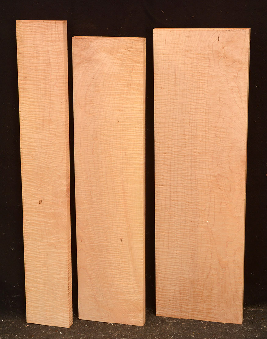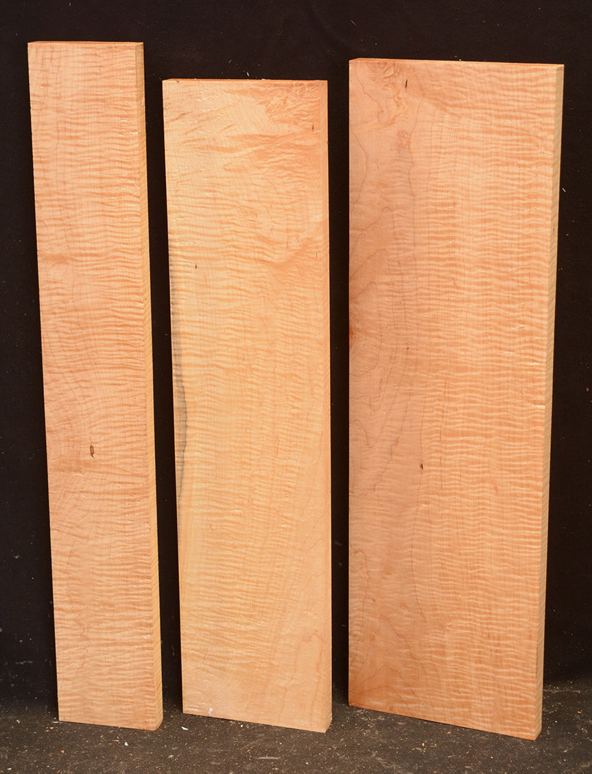 The heartwood is white or cream to light brown or reddish brown. Because of the generally small size of available logs, most sawmills produce flatsawn boards which will show a broken curl on the surface and a fiddleback curl on the quartersawn edge. Hard and heavy, 45 lbs/cu ft. Easy to work and takes a smooth polish. U.S.A.