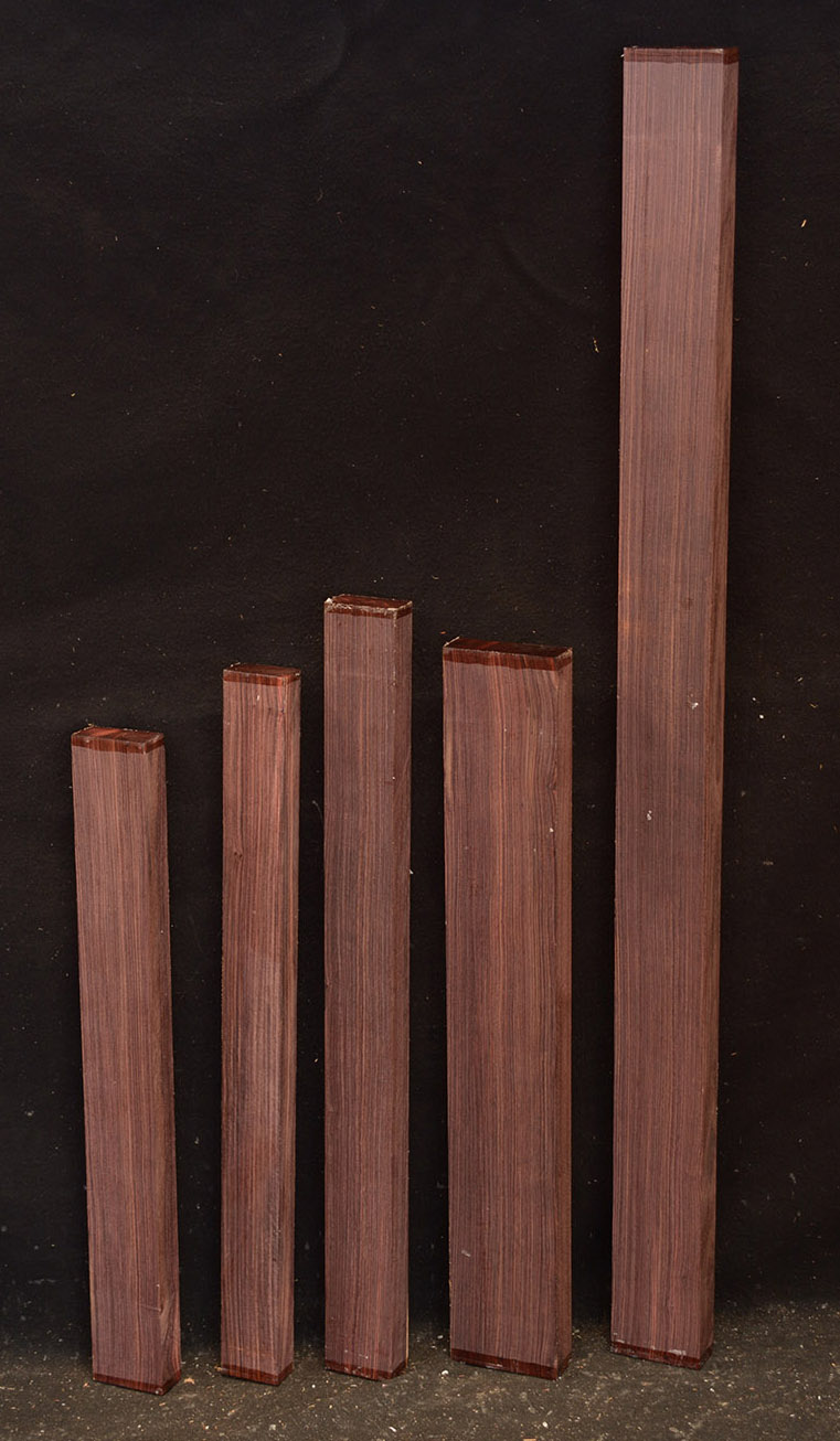 A true rosewood. The wood is variegated with different shades of purple and darker stripes. The specific gravity is 1.2 so it is hard and heavy. Used for inlays and bandings, turnery, and fancy furniture accessories.