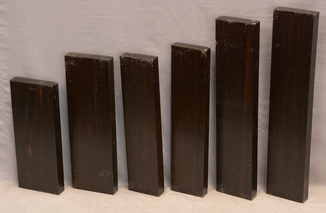 Sometimes called Gabon or Gaboon, this Ebony is sometimes jet black but oftentimes has grayish streaks that mostly disappear when finished or after the made object has been put into service. This Ebony has a marked resistance to checking that is characteristic of some of the Indian and Asian species. It has a wonderful texture and is easily carved, planed, turned, and milled. It is fairly fine-grained and takes a high polish. This Ebony usually originates in either Cameroon or Nigeria and the logs are rough hewn in the forest and oftentimes brought to the nearest road by human porters. With the disappearance of other species of black Ebony this species is fast becoming the Ebony of choice.