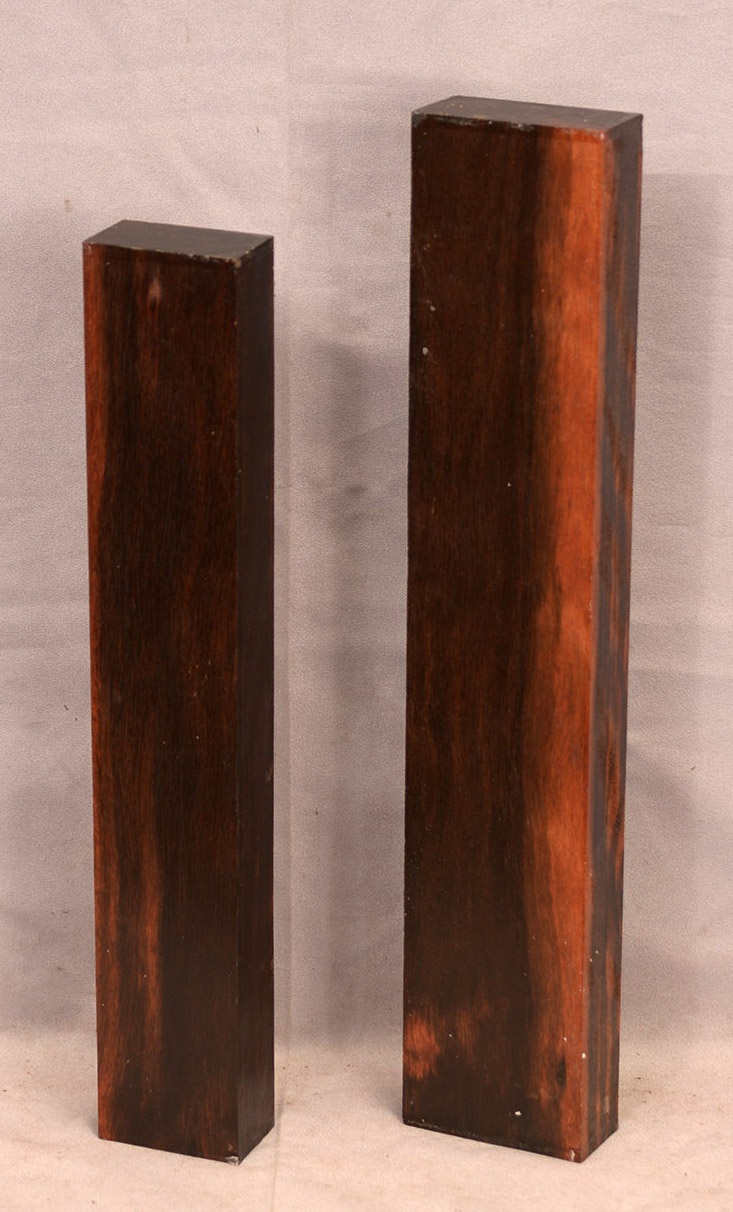 Sometimes called Gabon or Gaboon, this Ebony is sometimes jet black but oftentimes has grayish streaks that mostly disappear when finished or after the made object has been put into service. This Ebony has a marked resistance to checking that is characteristic of some of the Indian and Asian species. It has a wonderful texture and is easily carved, planed, turned, and milled. It is fairly fine-grained and takes a high polish. This Ebony usually originates in either Cameroon or Nigeria and the logs are rough hewn in the forest and oftentimes brought to the nearest road by human porters. With the disappearance of other species of black Ebony this species is fast becoming the Ebony of choice.