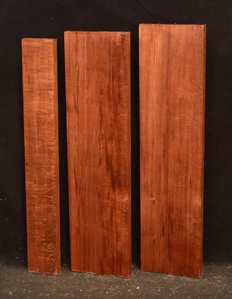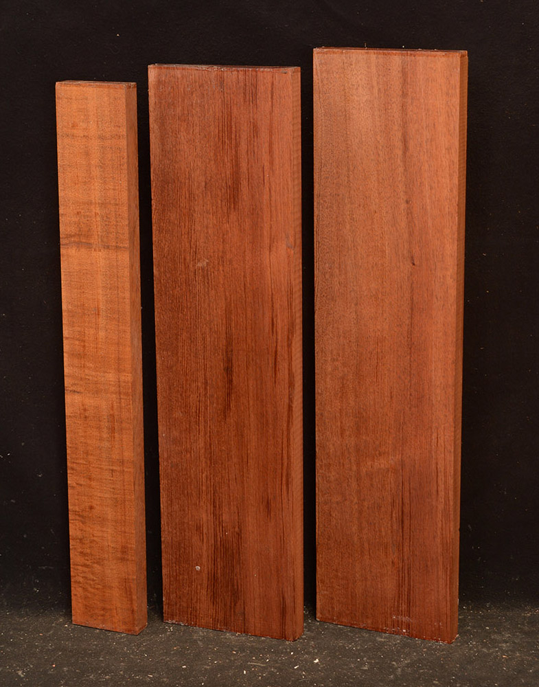 The heartwood of Tasmanian Blackwood is a golden-brown to reddish-brown color, oftentimes with darker streaks. It is extremely lustrous and takes a beautiful, smooth finish. It is a very close match to Koa and the type of figuring and tonal qualities is similar.
