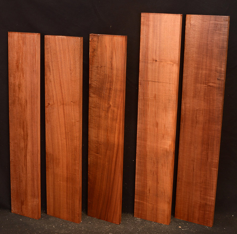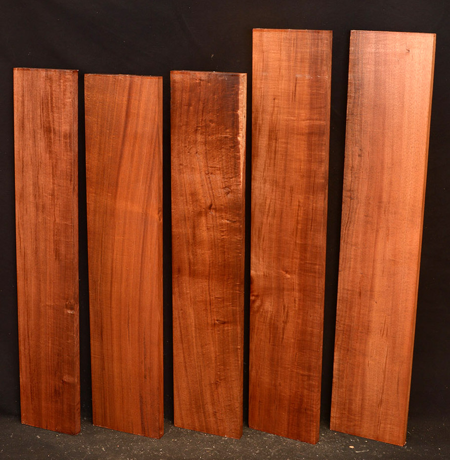 The heartwood of Tasmanian Blackwood is a golden-brown to reddish-brown color, oftentimes with darker streaks. It is extremely lustrous and takes a beautiful, smooth finish. It is a very close match to Koa and the type of figuring and tonal qualities is similar.