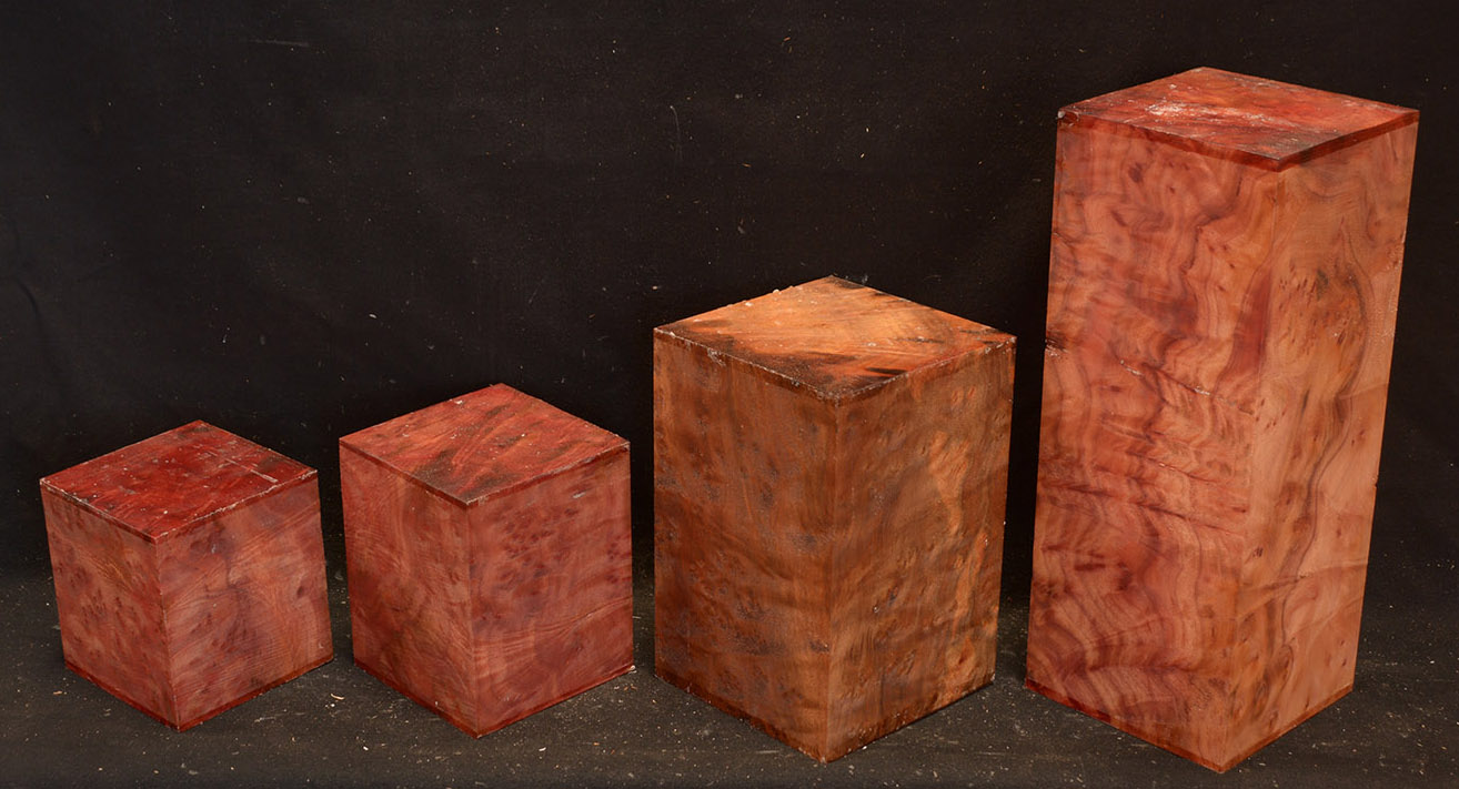 This rare burl is from S.E. Asia and is seldom seen on the world market. It is fine-grained and varies in color from a light reddish-brown to almost scarlet. It is easy to work and has a very pungent, spicy scent. For a burl it is remarkably stable. Green to partially air dried.