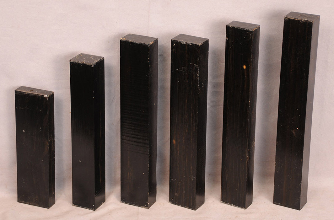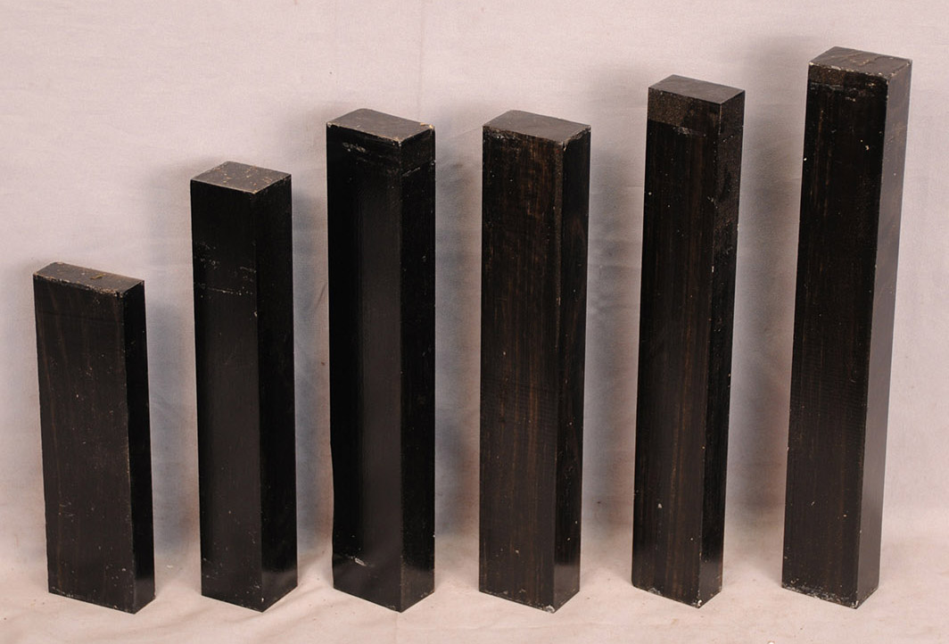 Sometimes called Gabon or Gaboon, this Ebony is sometimes jet black but oftentimes has grayish streaks that mostly disappear when finished or after the made object has been put into service. This Ebony has a marked resistance to checking that is characteristic of some of the Indian and Asian species. It has a wonderful texture and is easily carved, planed, turned, and milled. It is fairly fine-grained and takes a high polish. This Ebony usually originates in either Cameroon or Nigeria and the logs are rough hewn in the forest and oftentimes brought to the nearest road by human porters. With the disappearance of other species of black Ebony this species is fast becoming the Ebony of choice.