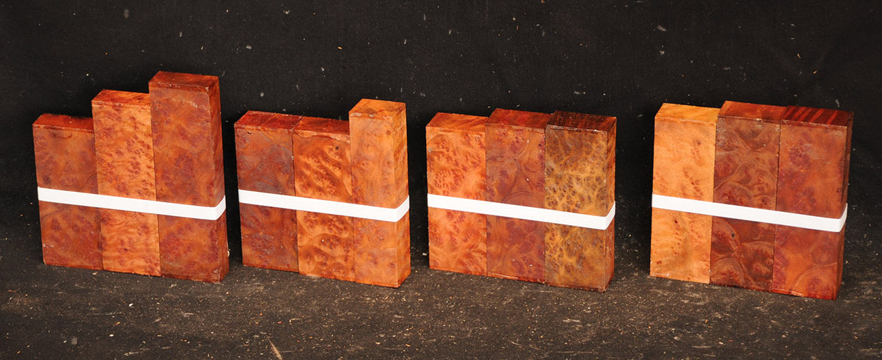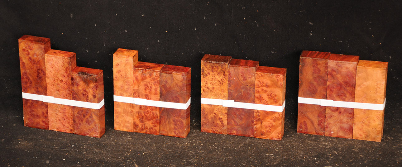 This rare burl is from S.E. Asia and is seldom seen on the world market. It is fine-grained and varies in color from a light reddish-brown to almost scarlet. It is easy to work and has a very pungent, spicy scent. For a burl it is remarkably stable. Green to partially air dried.