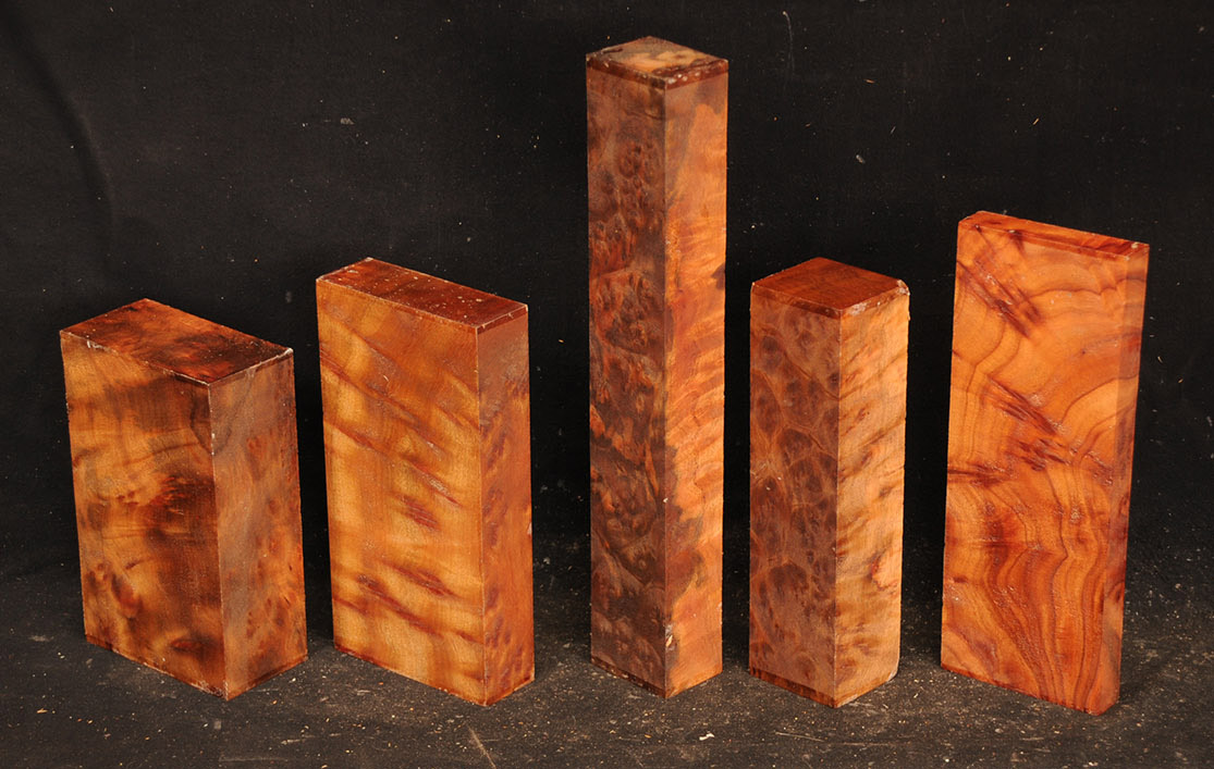 This rare burl is from S.E. Asia and is seldom seen on the world market. It is fine-grained and varies in color from a light reddish-brown to almost scarlet. It is easy to work and has a very pungent, spicy scent. For a burl it is remarkably stable. Green to partially air dried.
