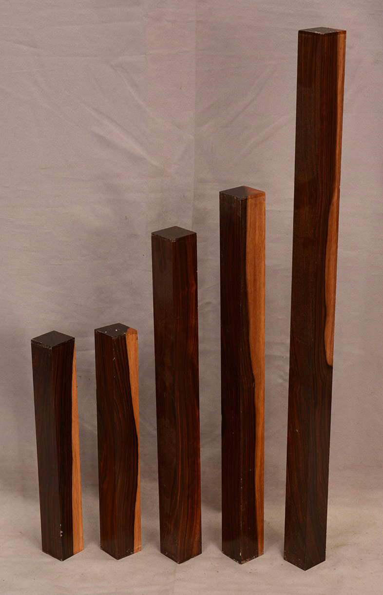 Originating in S.E. Asia, especially Indonesia, this Ebony is sometimes called Malaysian Blackwood. The heartwood is dark, sometimes with black stripes or streaking and oftentimes with a greenish cast in sharp contrast to the white to straw colored sapwood. We import this in large cants up to 8 x 14" with lengths to 10 feet. The wood is hard and heavy and is capable of a fine, high polish. Excellent for turnery and precious woodworks such as musical instruments, boxes, jewelry, etc.