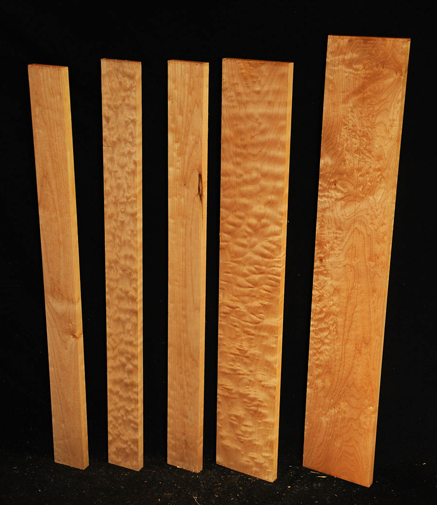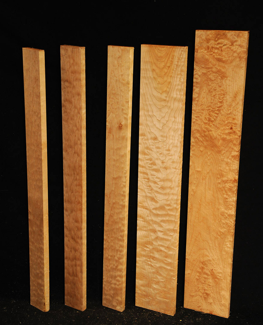 This tree is native to the Pacific Northwest. It has the distinction of having the largest leaf of the Maples-up to 15" in diameter. This is a soft Maple. The tree can produce many different types of figure, including quilted (tubular, popcorn, & cloud), curly (fiddleback, broken, & basketweave), and burl.