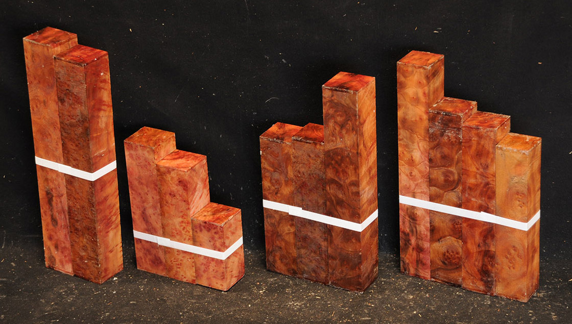 This rare burl is from S.E. Asia and is seldom seen on the world market. It is fine-grained and varies in color from a light reddish-brown to almost scarlet. It is easy to work and has a very pungent, spicy scent. For a burl it is remarkably stable. Green to partially air dried.