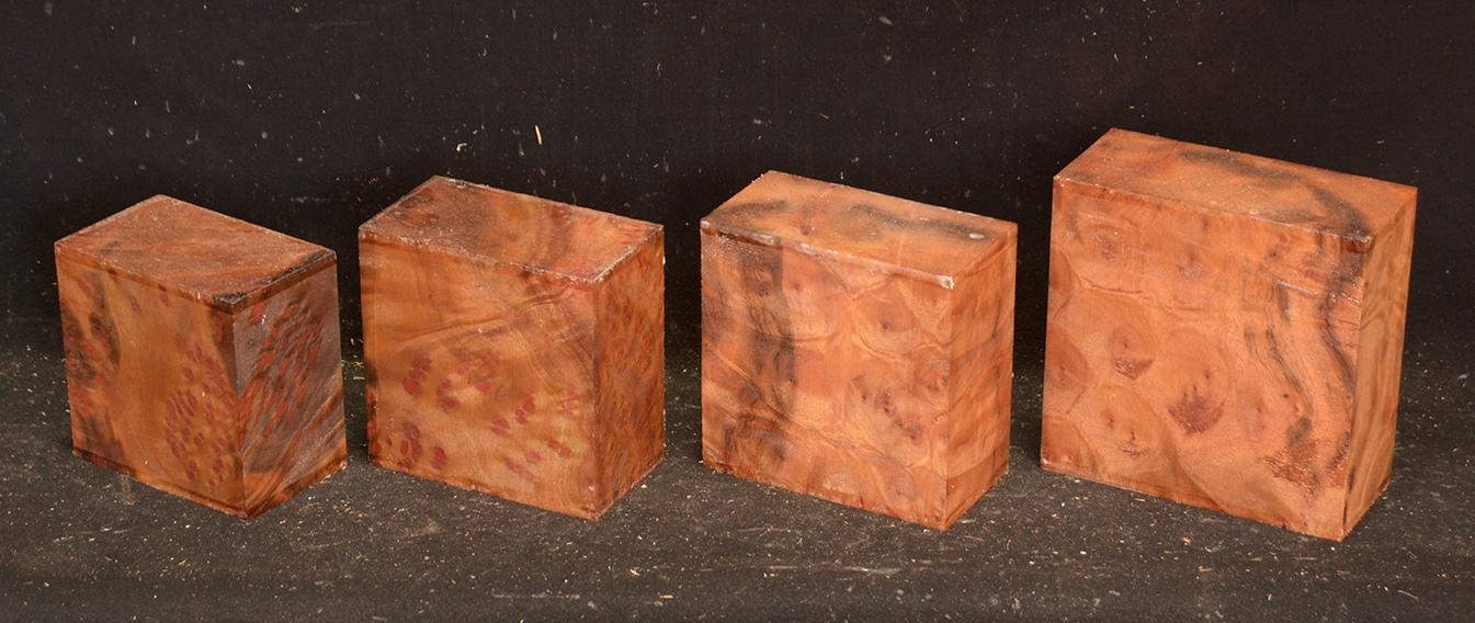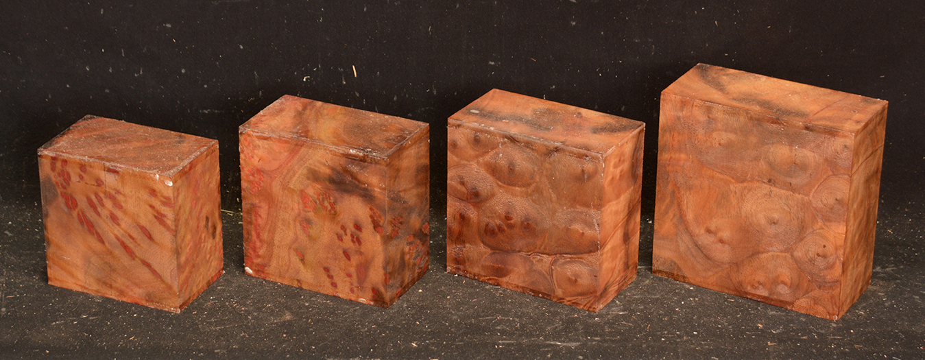 This rare burl is from S.E. Asia and is seldom seen on the world market. It is fine-grained and varies in color from a light reddish-brown to almost scarlet. It is easy to work and has a very pungent, spicy scent. For a burl it is remarkably stable. Green to partially air dried.