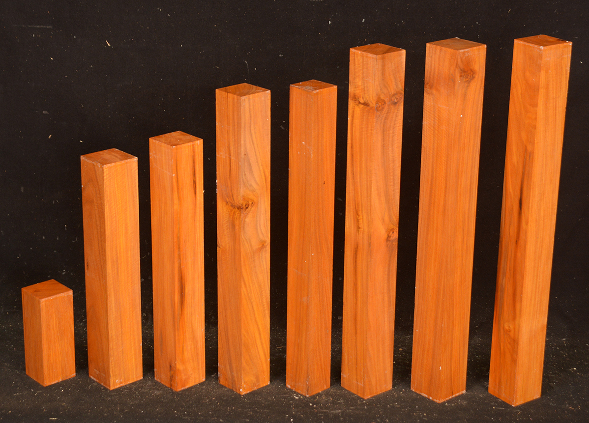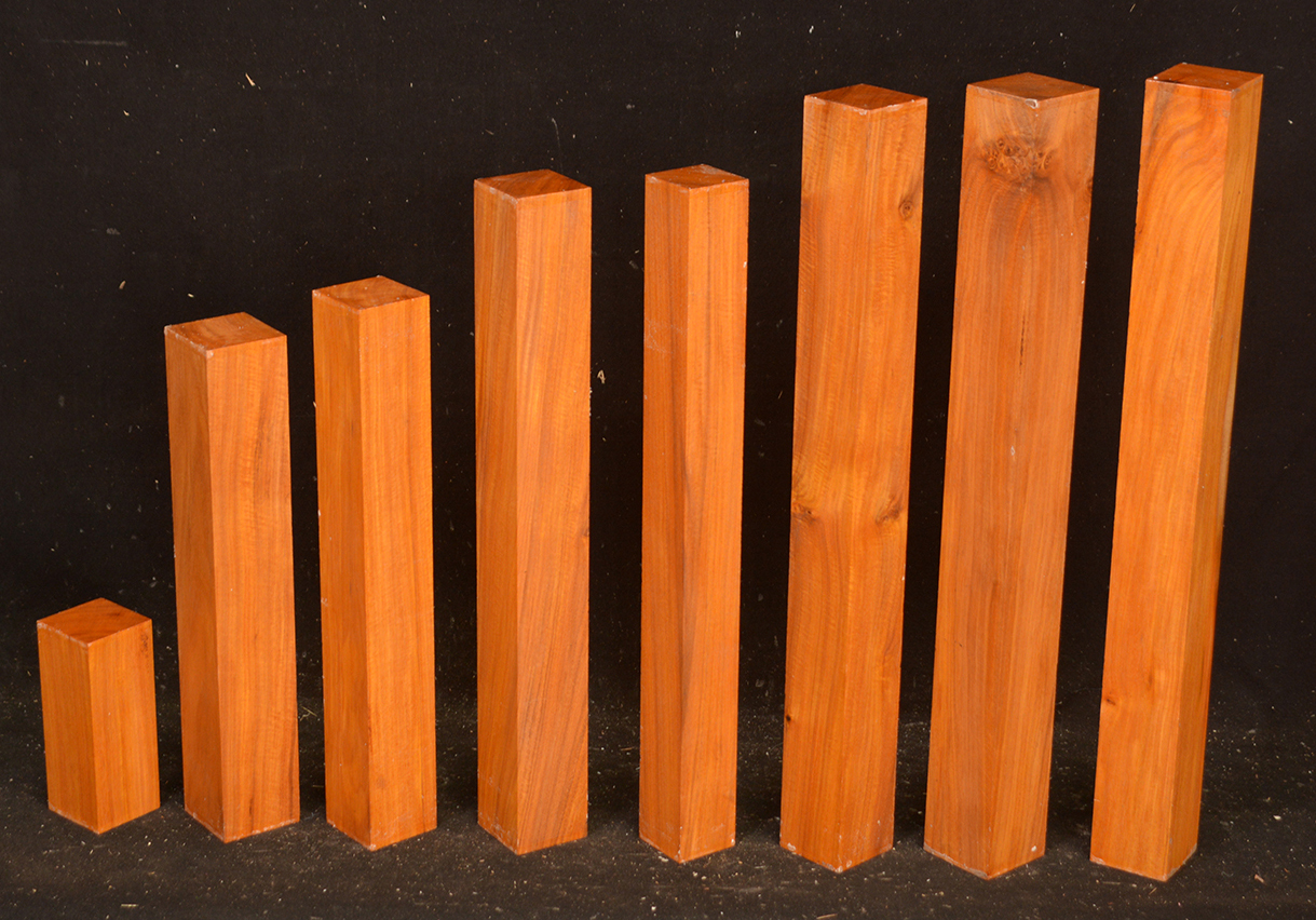 Found in the Yucatan Peninsula in Mexico and related to Pernambuco (Guilandina echinata). It is sought after for house posts in Mexico as it is said to be impervious to termites and other insect pests. It is a lovely light to dark orange color, is fairly hard and heavy, and is capable of taking a very high polish. Rare.