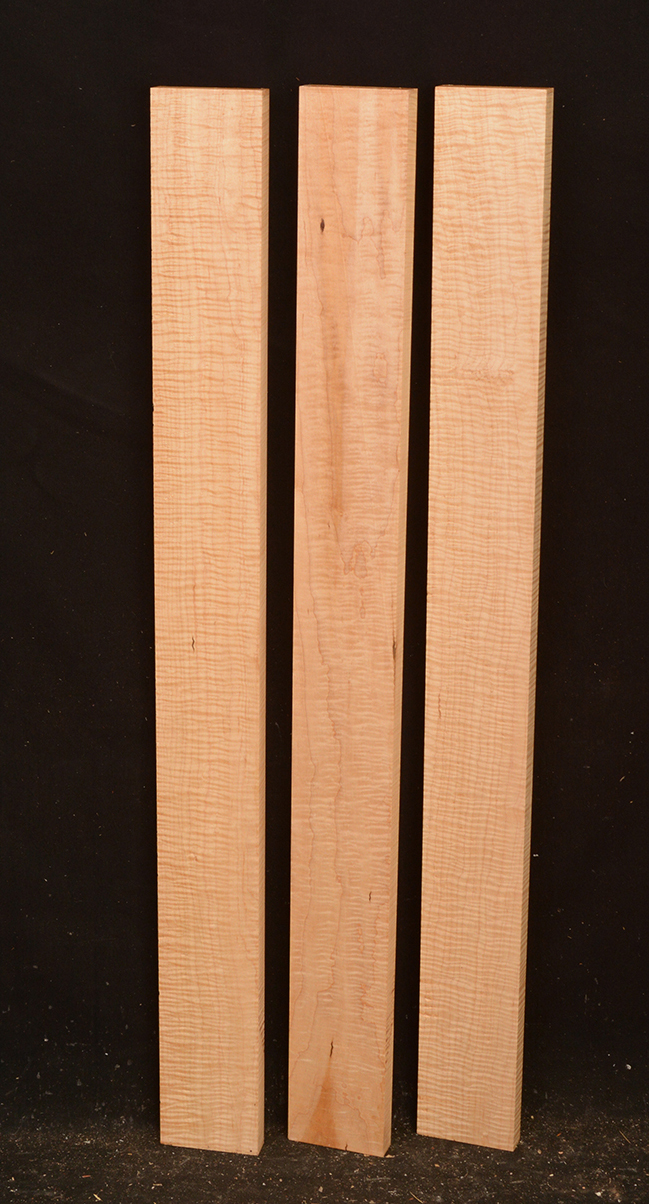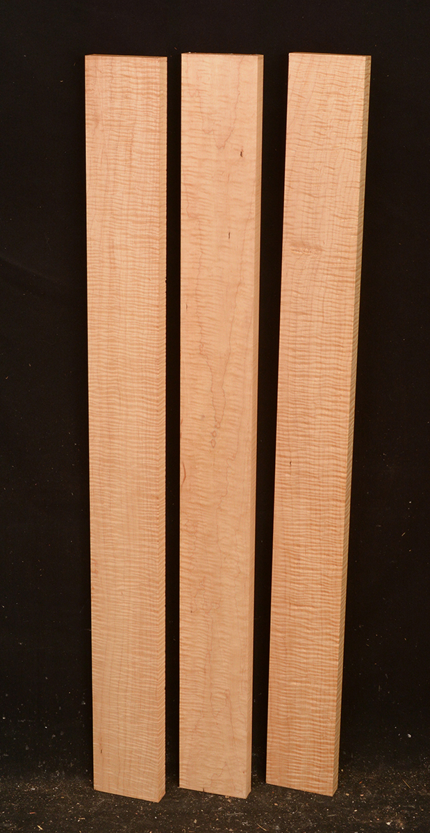 The heartwood is white or cream to light brown or reddish brown. Because of the generally small size of available logs, most sawmills produce flatsawn boards which will show a broken curl on the surface and a fiddleback curl on the quartersawn edge. Hard and heavy, 45 lbs/cu ft. Easy to work and takes a smooth polish. U.S.A.