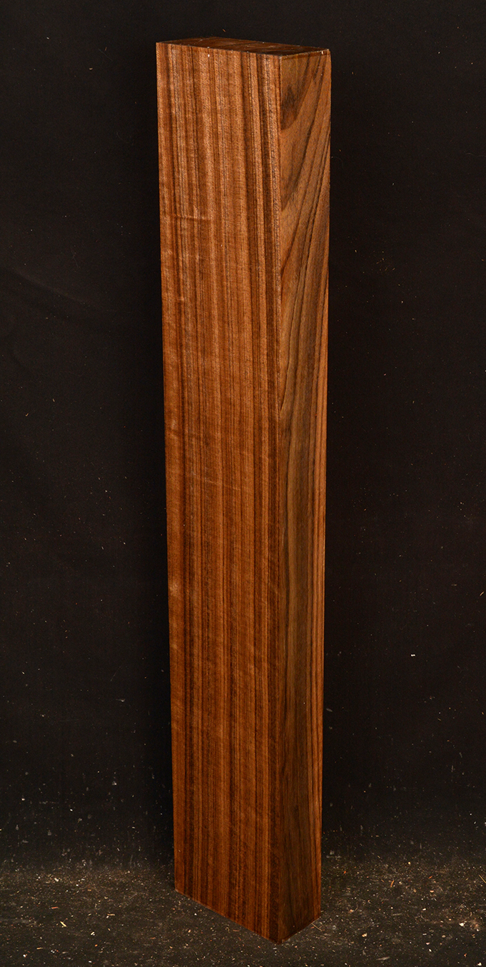 Also called Ovangkol and Amazakoue. This wood is increasingly becoming popular as an acoustic guitar wood. The color varies from a rich, golden brown to a lustrous grayish brown usually with a black stripe.