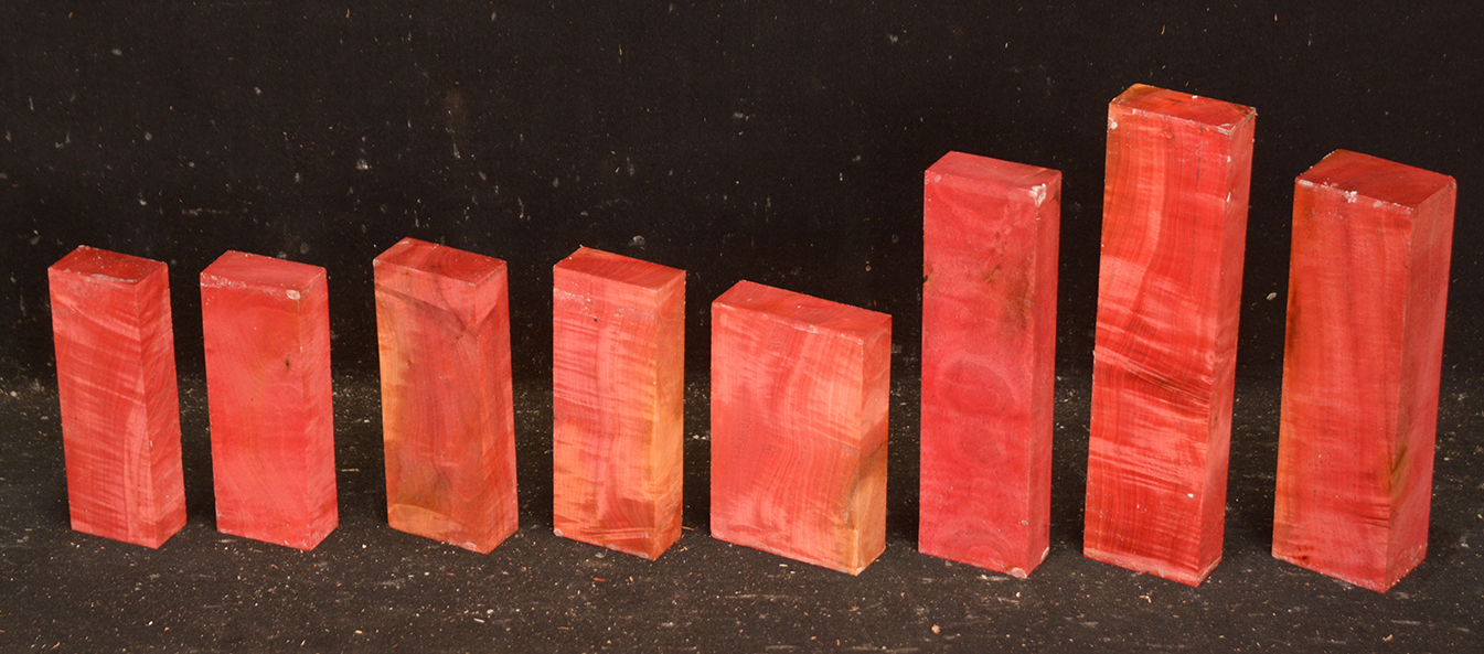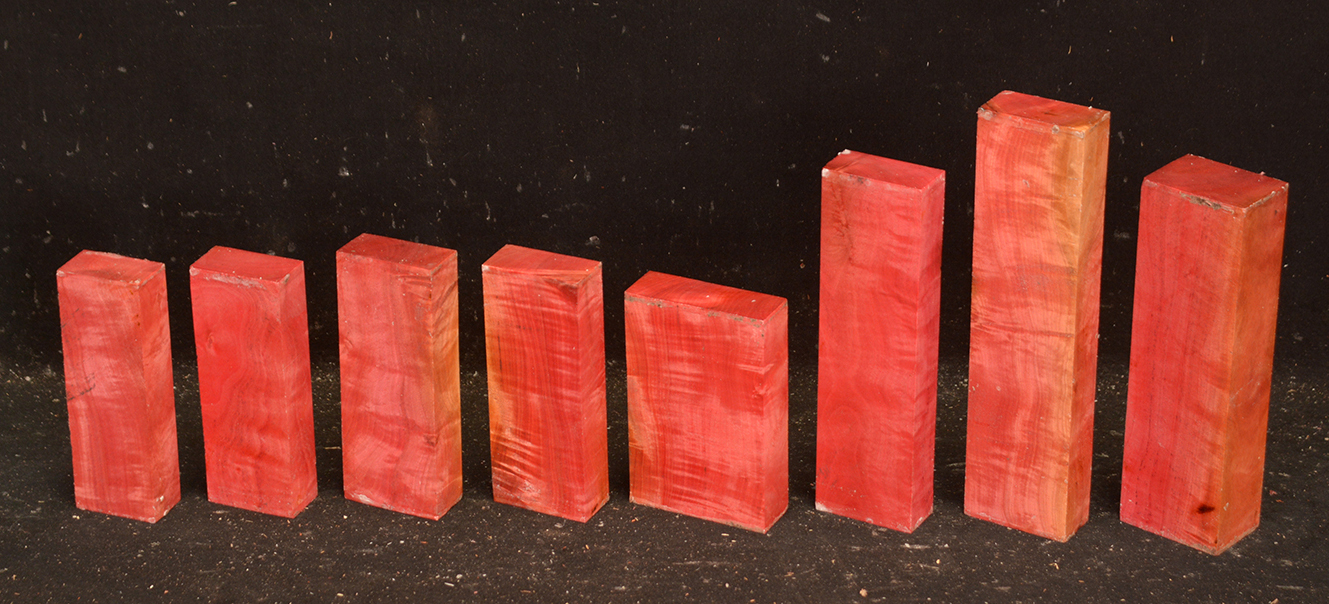 A fairly rare wood from Southern Africa ranging in color from light pink to watermelon red. At one time it was described as being "rarer than diamonds". It is very dense, hard and heavy and takes a very high polish. Beautiful for turnery, inlays and other precious items.