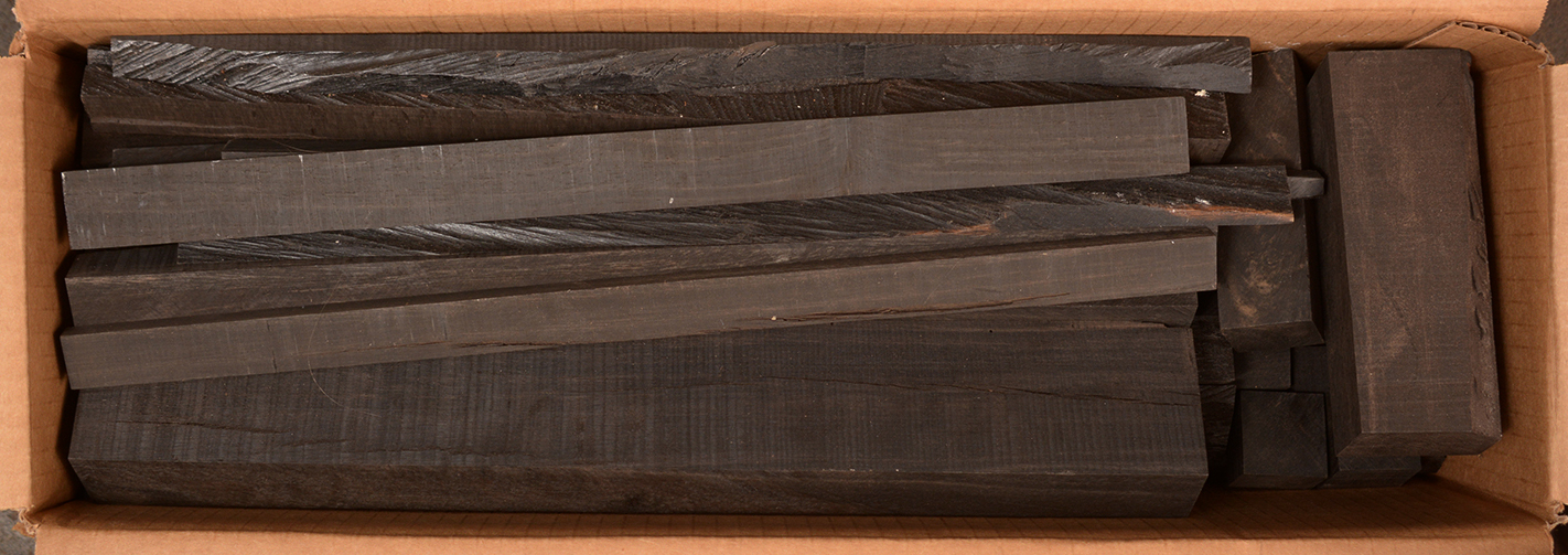 Sometimes called Gabon or Gaboon, this Ebony is sometimes jet black but oftentimes has grayish streaks that mostly disappear when finished or after the made object has been put into service. This Ebony has a marked resistance to checking that is characteristic of some of the Indian and Asian species. It has a wonderful texture and is easily carved, planed, turned, and milled. It is fairly fine-grained and takes a high polish. This Ebony usually originates in either Cameroon or Nigeria and the logs are rough hewn in the forest and oftentimes brought to the nearest road by human porters. With the disappearance of other species of black Ebony this species is fast becoming the Ebony of choice.