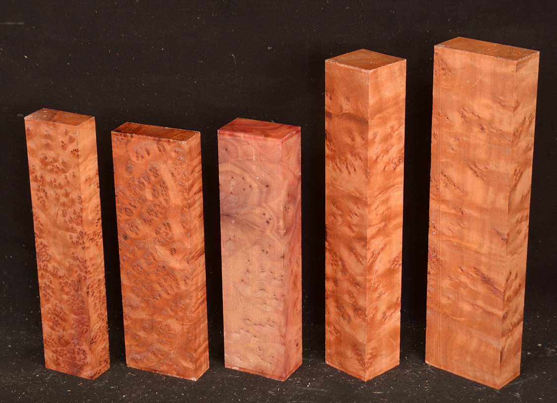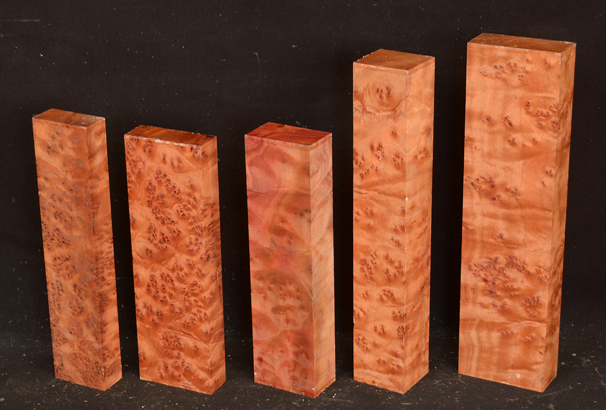 This rare burl is from S.E. Asia and is seldom seen on the world market. It is fine-grained and varies in color from a light reddish-brown to almost scarlet. It is easy to work and has a very pungent, spicy scent. For a burl it is remarkably stable. Green to partially air dried.