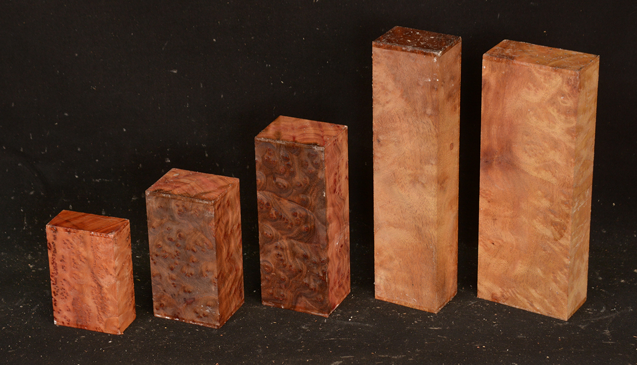 This rare burl is from S.E. Asia and is seldom seen on the world market. It is fine-grained and varies in color from a light reddish-brown to almost scarlet. It is easy to work and has a very pungent, spicy scent. For a burl it is remarkably stable. Green to partially air dried.