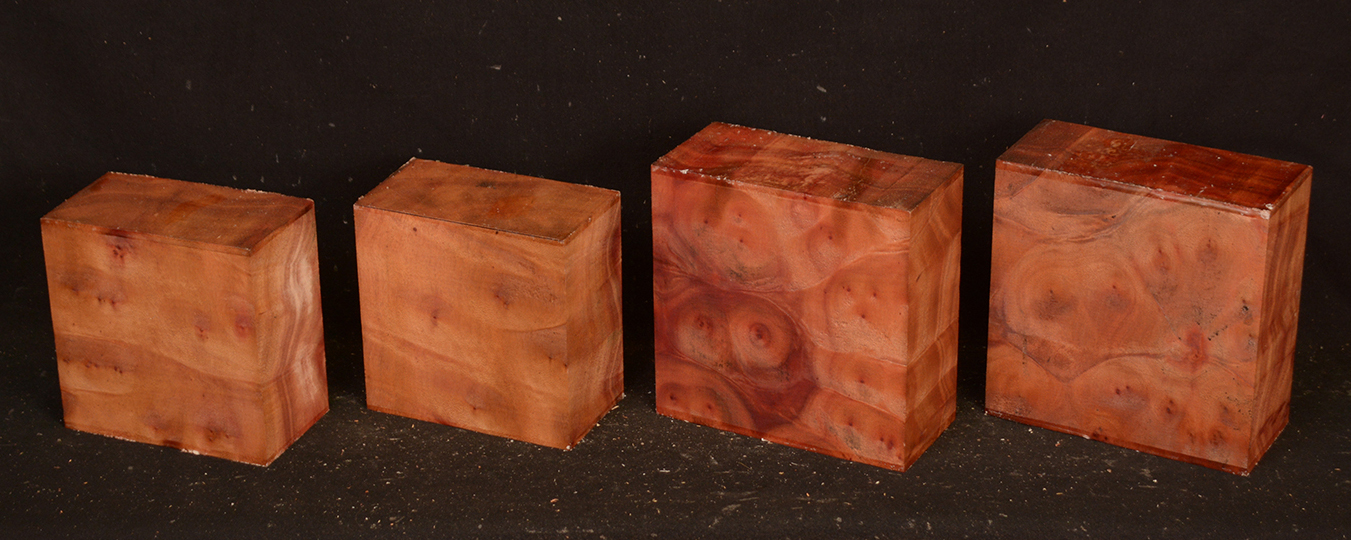 This rare burl is from S.E. Asia and is seldom seen on the world market. It is fine-grained and varies in color from a light reddish-brown to almost scarlet. It is easy to work and has a very pungent, spicy scent. For a burl it is remarkably stable. Green to partially air dried.