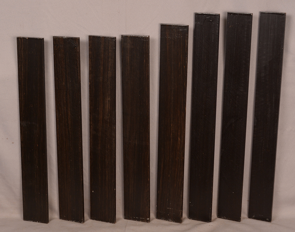 Sometimes called Gabon or Gaboon, this Ebony is sometimes jet black but oftentimes has grayish streaks that mostly disappear when finished or after the made object has been put into service. This Ebony has a marked resistance to checking that is characteristic of some of the Indian and Asian species. It has a wonderful texture and is easily carved, planed, turned, and milled. It is fairly fine-grained and takes a high polish. This Ebony usually originates in either Cameroon or Nigeria and the logs are rough hewn in the forest and oftentimes brought to the nearest road by human porters. With the disappearance of other species of black Ebony this species is fast becoming the Ebony of choice.
