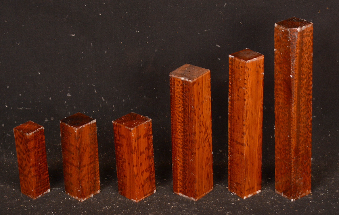 Also called Letterwood and Leopardwood. Color: dark red to reddish brown with irregular black speckles or stripes. Fine textured and highly lustrous. Very hard and heavy, 75-84 lbs/cu ft. Takes a beautiful finish. Very rare and very expensive. Guyana and Surinam.