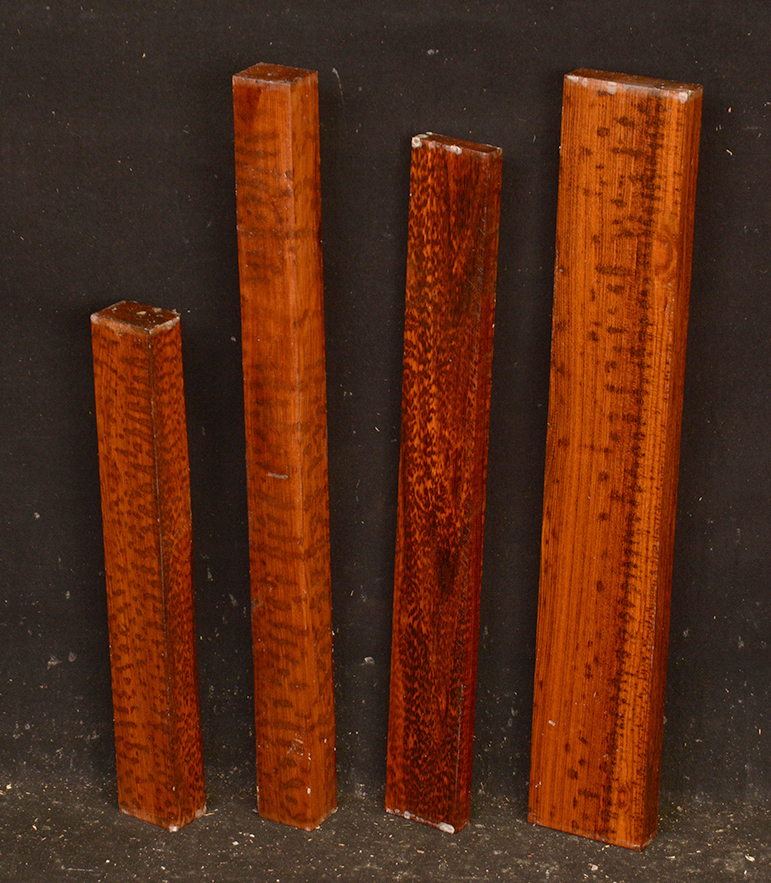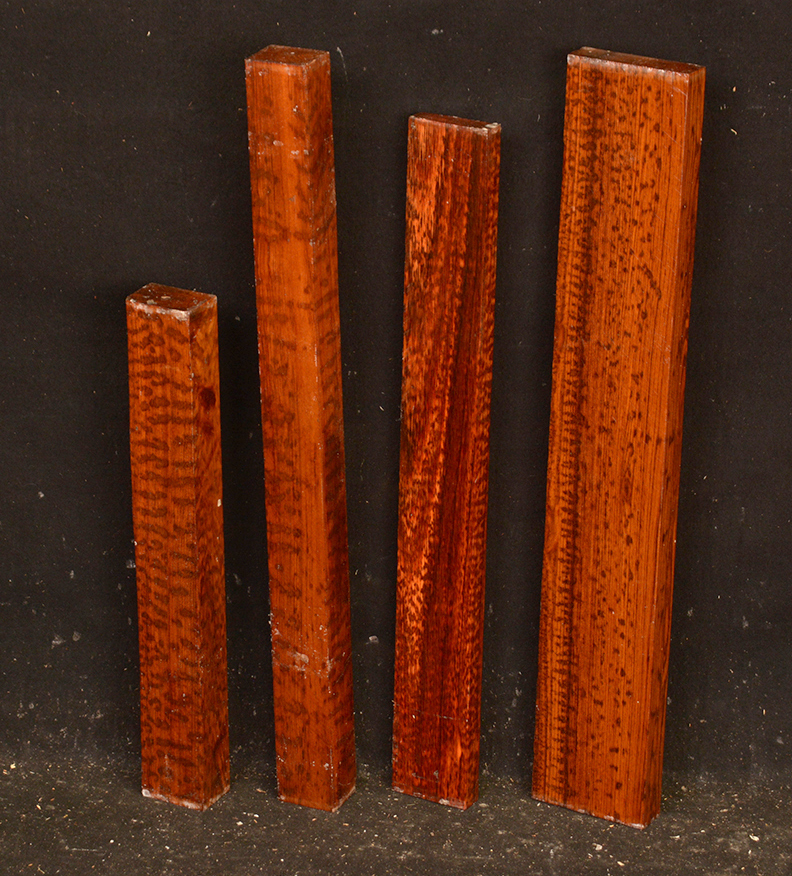 Also called Letterwood and Leopardwood. Color: dark red to reddish brown with irregular black speckles or stripes. Fine textured and highly lustrous. Very hard and heavy, 75-84 lbs/cu ft. Takes a beautiful finish. Very rare and very expensive. Guyana and Surinam.