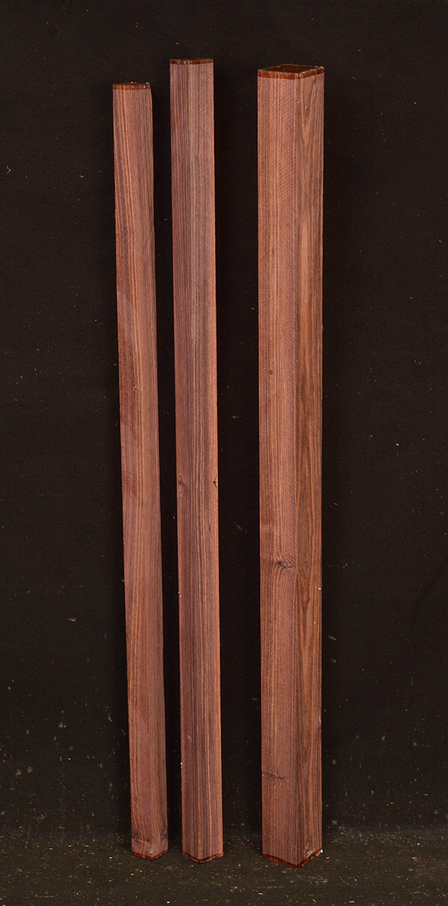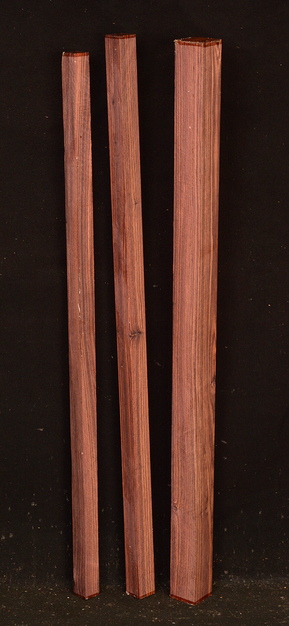 A true rosewood. The wood is variegated with different shades of purple and darker stripes. The specific gravity is 1.2 so it is hard and heavy. Used for inlays and bandings, turnery, and fancy furniture accessories.