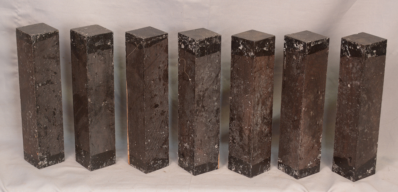 The heartwood is purplish to brownish-black with dark gray streaks giving an overall impression of being black. Lustrous with an attractive inner chatoyance. Very hard, heavy, close-grained, and virtually free from pores. Its stability and lovely tonal qualities make it an excellent instrument wood.
