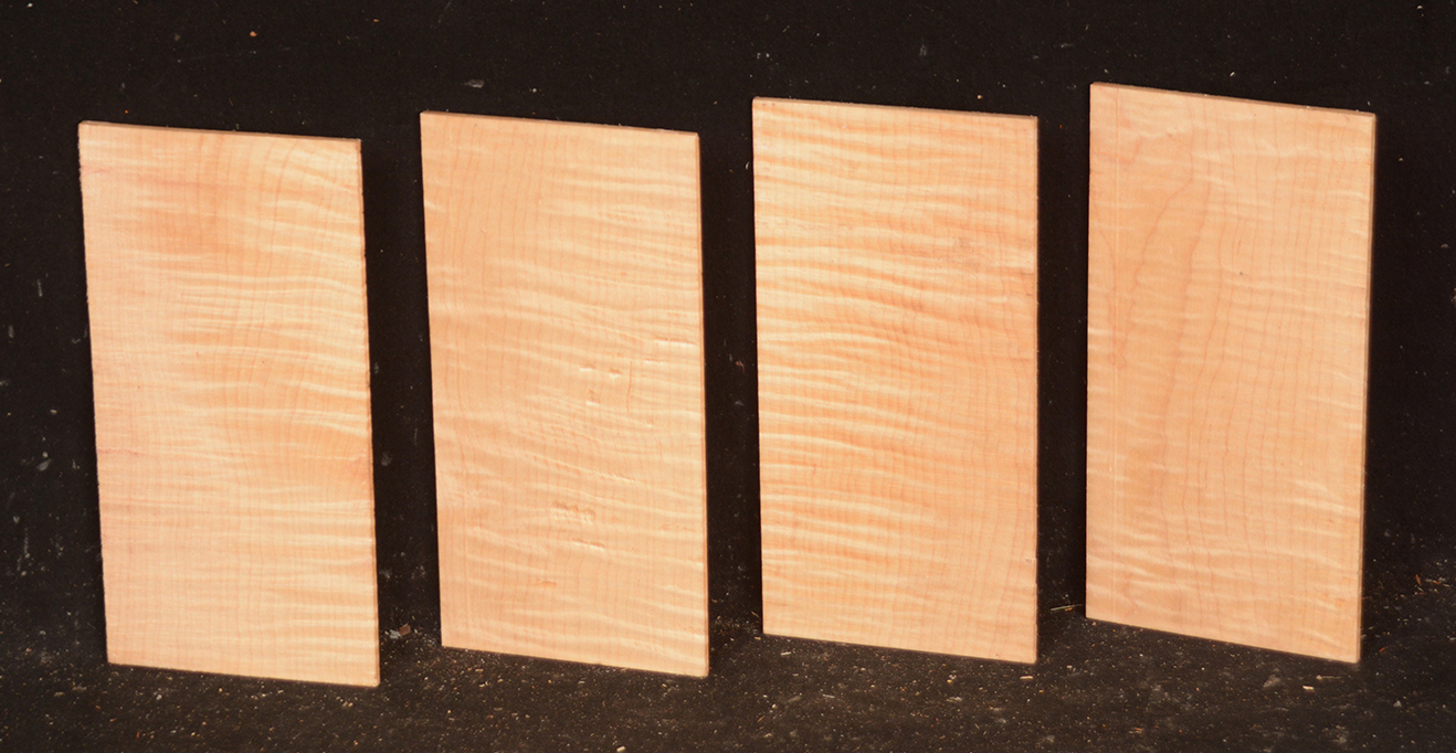 The heartwood is white or cream to light brown or reddish brown. Because of the generally small size of available logs, most sawmills produce flatsawn boards which will show a broken curl on the surface and a fiddleback curl on the quartersawn edge. Hard and heavy, 45 lbs/cu ft. Easy to work and takes a smooth polish. U.S.A.