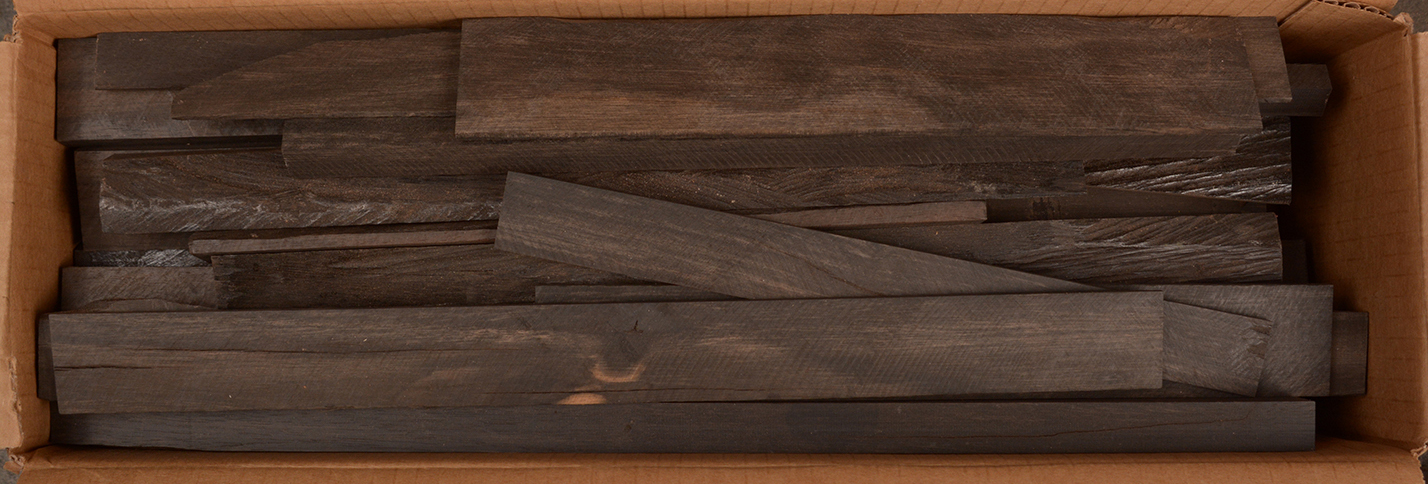 Sometimes called Gabon or Gaboon, this Ebony is sometimes jet black but oftentimes has grayish streaks that mostly disappear when finished or after the made object has been put into service. This Ebony has a marked resistance to checking that is characteristic of some of the Indian and Asian species. It has a wonderful texture and is easily carved, planed, turned, and milled. It is fairly fine-grained and takes a high polish. This Ebony usually originates in either Cameroon or Nigeria and the logs are rough hewn in the forest and oftentimes brought to the nearest road by human porters. With the disappearance of other species of black Ebony this species is fast becoming the Ebony of choice.