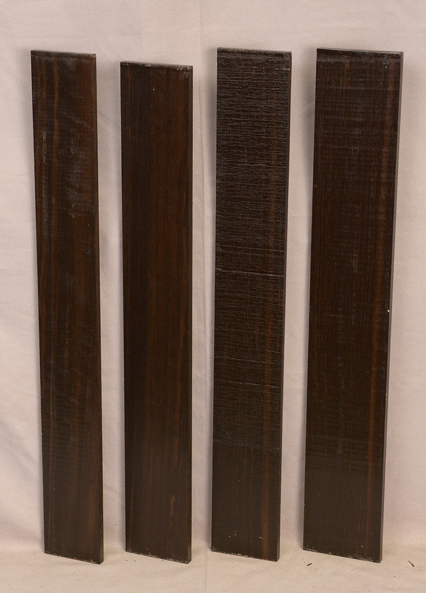 Sometimes called Gabon or Gaboon, this Ebony is sometimes jet black but oftentimes has grayish streaks that mostly disappear when finished or after the made object has been put into service. This Ebony has a marked resistance to checking that is characteristic of some of the Indian and Asian species. It has a wonderful texture and is easily carved, planed, turned, and milled. It is fairly fine-grained and takes a high polish. This Ebony usually originates in either Cameroon or Nigeria and the logs are rough hewn in the forest and oftentimes brought to the nearest road by human porters. With the disappearance of other species of black Ebony this species is fast becoming the Ebony of choice.