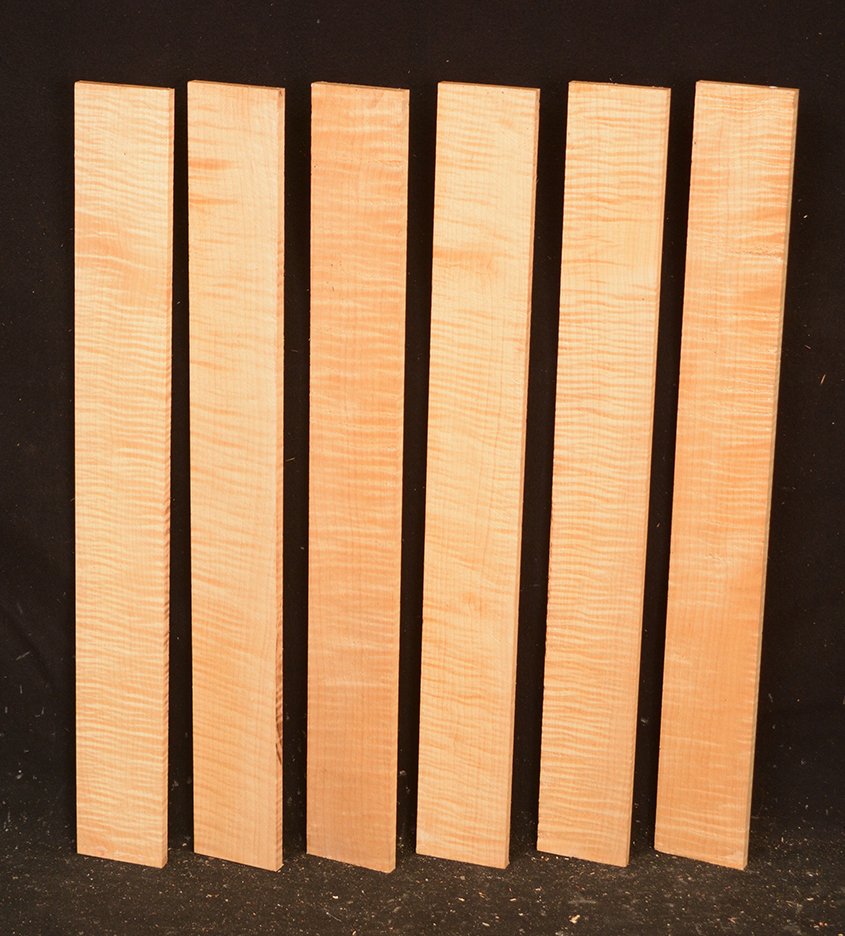 The heartwood is white or cream to light brown or reddish brown. Because of the generally small size of available logs, most sawmills produce flatsawn boards which will show a broken curl on the surface and a fiddleback curl on the quartersawn edge. Hard and heavy, 45 lbs/cu ft. Easy to work and takes a smooth polish. U.S.A.