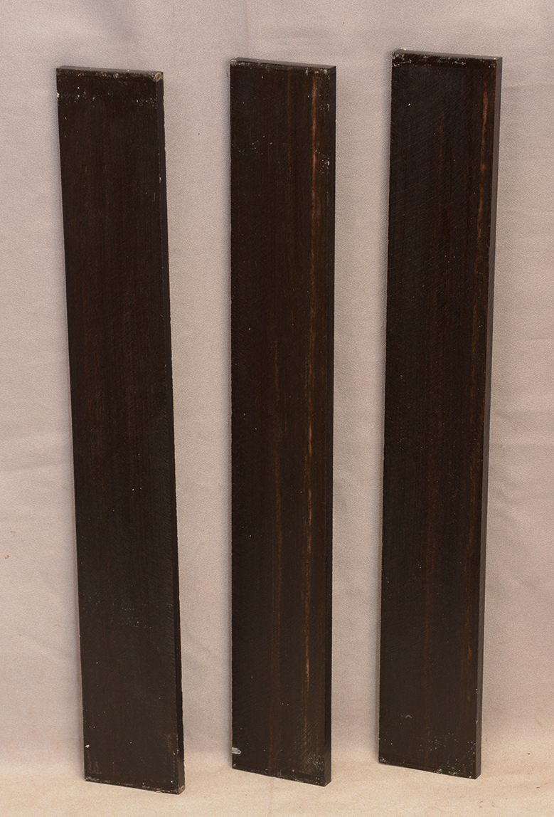 Sometimes called Gabon or Gaboon, this Ebony is sometimes jet black but oftentimes has grayish streaks that mostly disappear when finished or after the made object has been put into service. This Ebony has a marked resistance to checking that is characteristic of some of the Indian and Asian species. It has a wonderful texture and is easily carved, planed, turned, and milled. It is fairly fine-grained and takes a high polish. This Ebony usually originates in either Cameroon or Nigeria and the logs are rough hewn in the forest and oftentimes brought to the nearest road by human porters. With the disappearance of other species of black Ebony this species is fast becoming the Ebony of choice.
