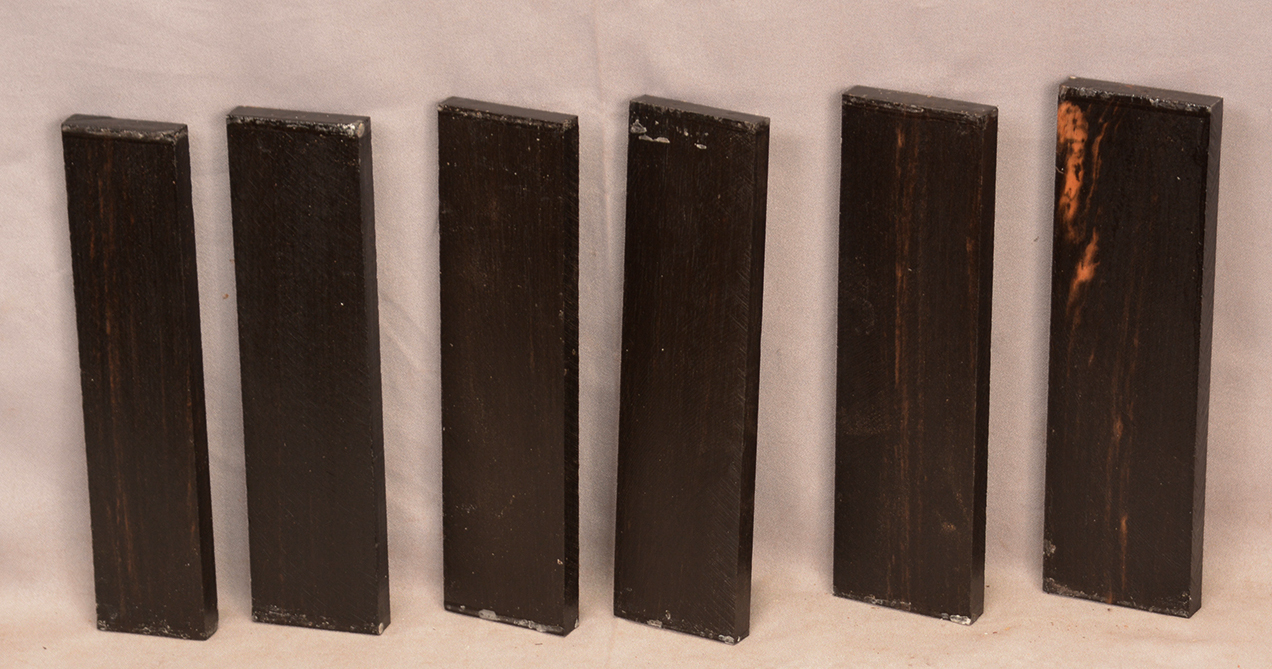 Sometimes called Gabon or Gaboon, this Ebony is sometimes jet black but oftentimes has grayish streaks that mostly disappear when finished or after the made object has been put into service. This Ebony has a marked resistance to checking that is characteristic of some of the Indian and Asian species. It has a wonderful texture and is easily carved, planed, turned, and milled. It is fairly fine-grained and takes a high polish. This Ebony usually originates in either Cameroon or Nigeria and the logs are rough hewn in the forest and oftentimes brought to the nearest road by human porters. With the disappearance of other species of black Ebony this species is fast becoming the Ebony of choice.