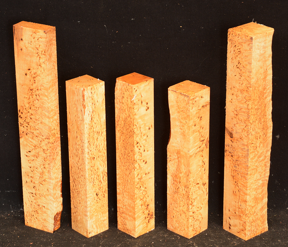 Also called Alpine Burl or Karelian Burl after the Finnish province of Karelia where it is often found. The high figure found in this wood is caused when the tree heals the damage done by an invasive boring beetle. The beetle infestation leaves the trees stunted and sometimes deformed but produces wood with small twists and swirls that highlight the darker, burly figure. Rare.