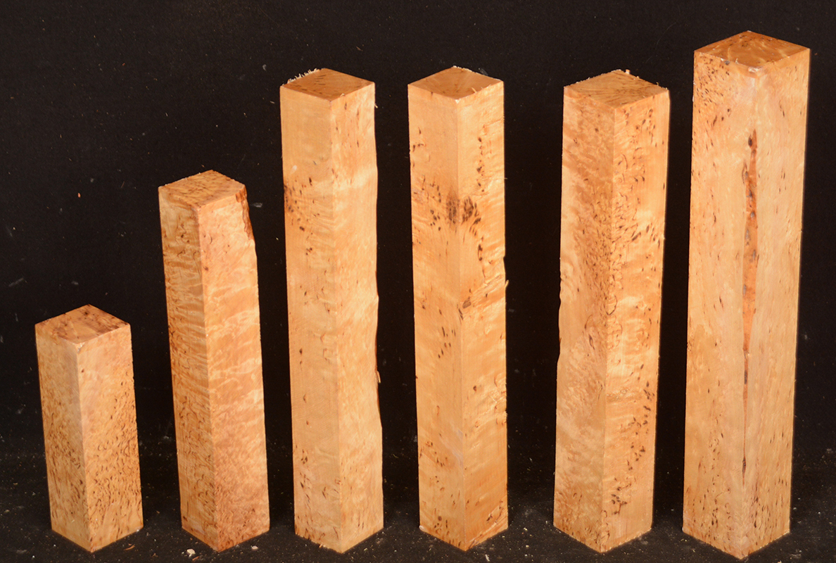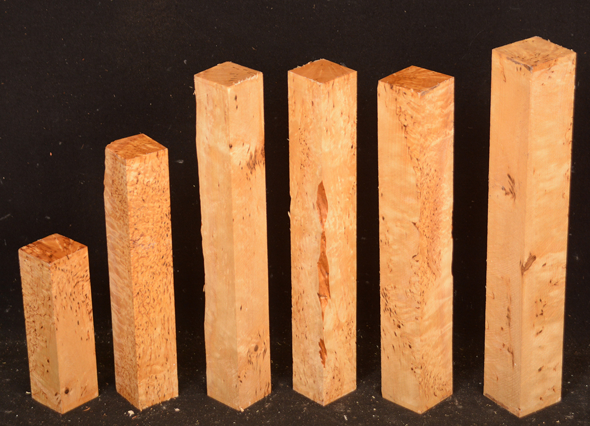 Also called Alpine Burl or Karelian Burl after the Finnish province of Karelia where it is often found. The high figure found in this wood is caused when the tree heals the damage done by an invasive boring beetle. The beetle infestation leaves the trees stunted and sometimes deformed but produces wood with small twists and swirls that highlight the darker, burly figure. Rare.