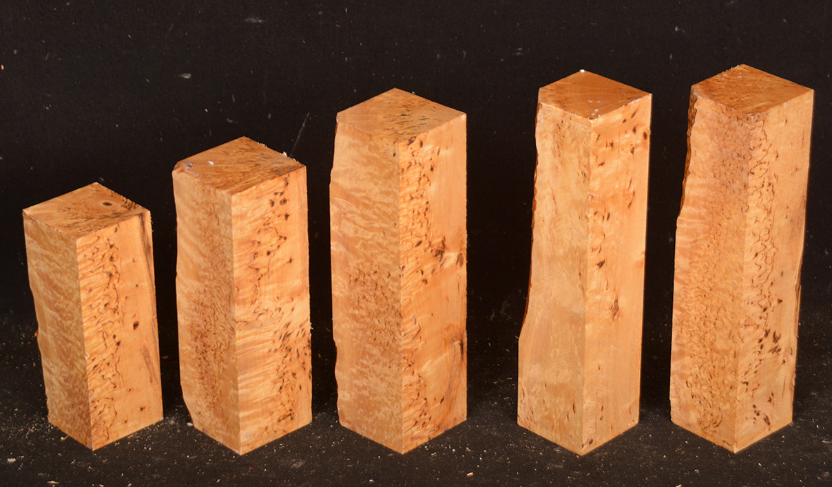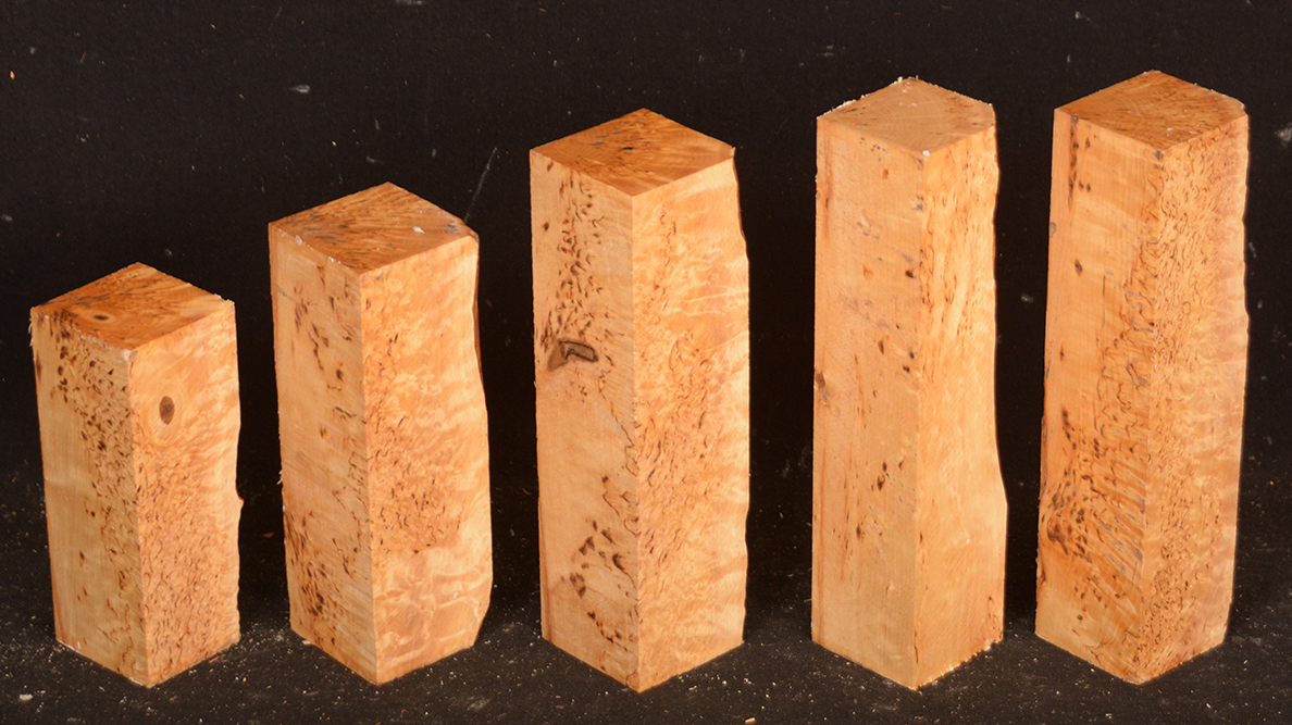 Also called Alpine Burl or Karelian Burl after the Finnish province of Karelia where it is often found. The high figure found in this wood is caused when the tree heals the damage done by an invasive boring beetle. The beetle infestation leaves the trees stunted and sometimes deformed but produces wood with small twists and swirls that highlight the darker, burly figure. Rare.