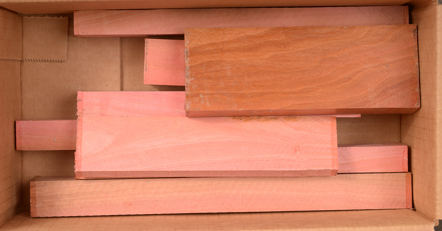 A fairly rare wood from Southern Africa ranging in color from light pink to watermelon red. At one time it was described as being "rarer than diamonds". It is very dense, hard and heavy and takes a very high polish. Beautiful for turnery, inlays and other precious items.