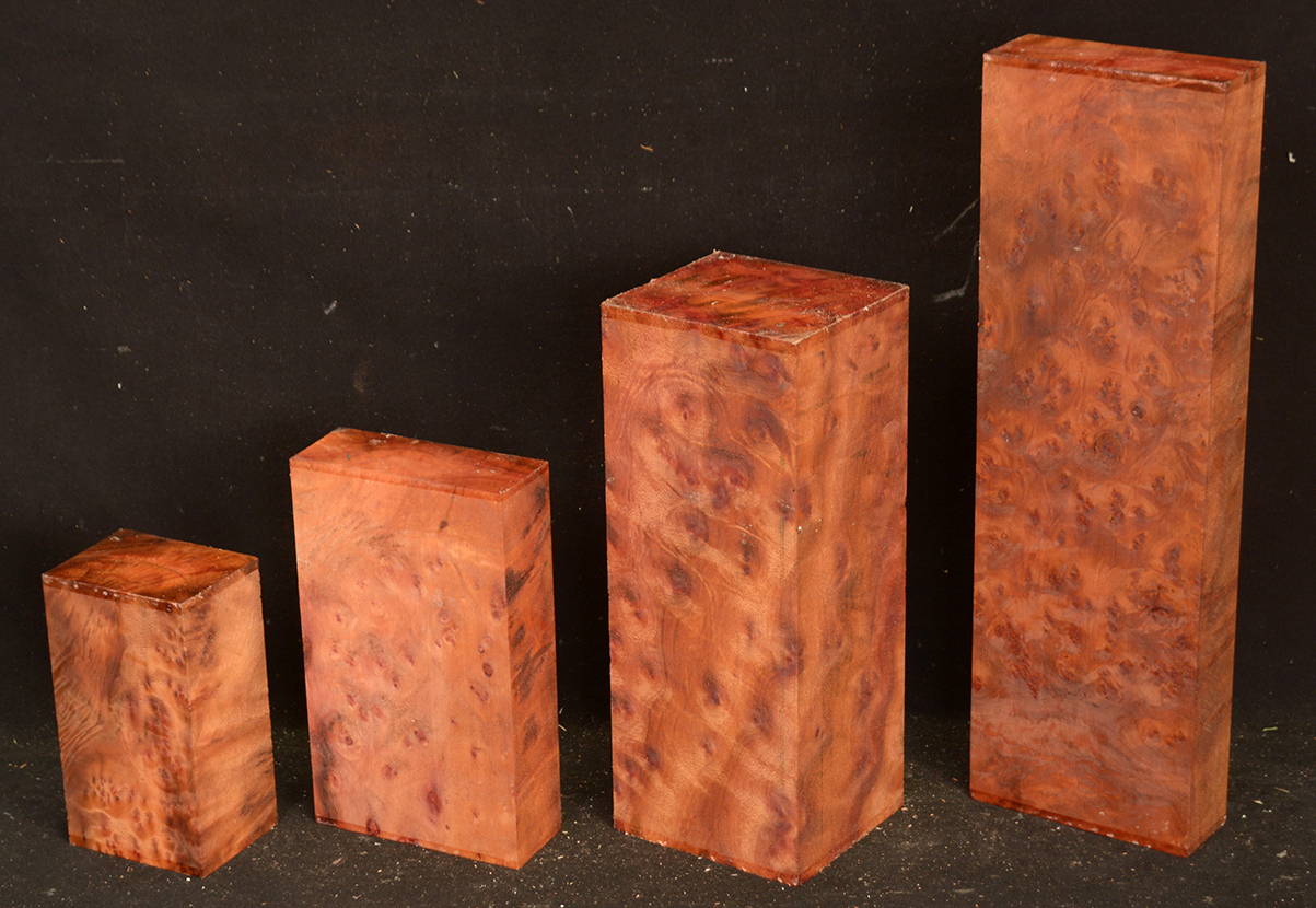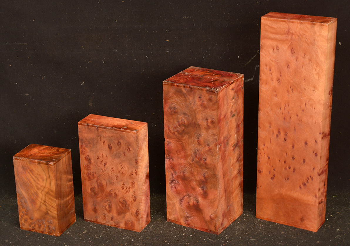 This rare burl is from S.E. Asia and is seldom seen on the world market. It is fine-grained and varies in color from a light reddish-brown to almost scarlet. It is easy to work and has a very pungent, spicy scent. For a burl it is remarkably stable. Green to partially air dried.