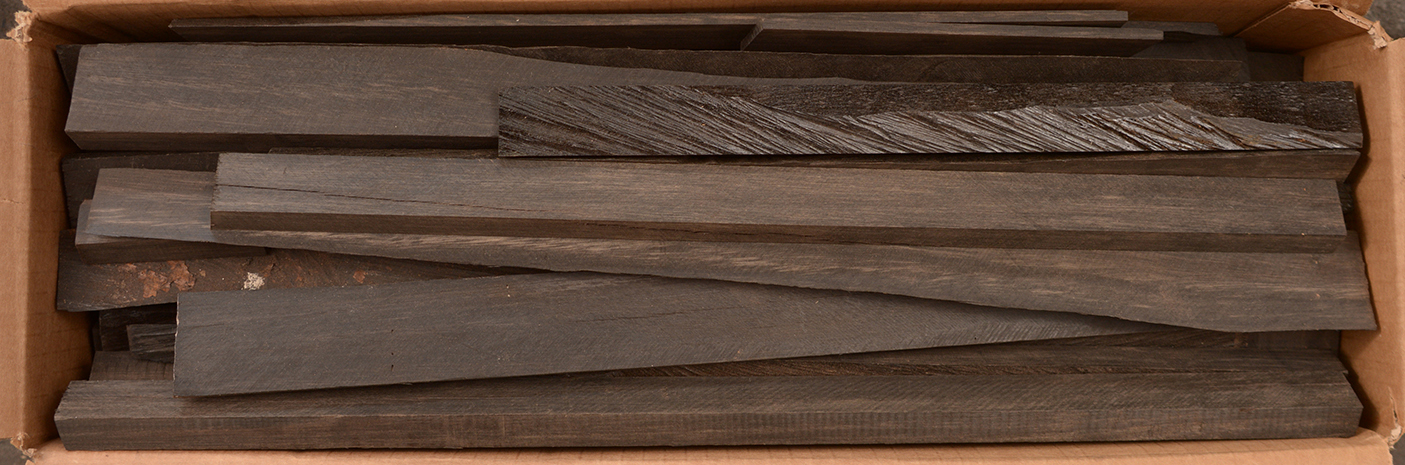 Sometimes called Gabon or Gaboon, this Ebony is sometimes jet black but oftentimes has grayish streaks that mostly disappear when finished or after the made object has been put into service. This Ebony has a marked resistance to checking that is characteristic of some of the Indian and Asian species. It has a wonderful texture and is easily carved, planed, turned, and milled. It is fairly fine-grained and takes a high polish. This Ebony usually originates in either Cameroon or Nigeria and the logs are rough hewn in the forest and oftentimes brought to the nearest road by human porters. With the disappearance of other species of black Ebony this species is fast becoming the Ebony of choice.