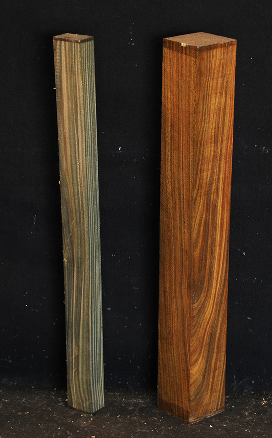 Related to Lignum vitae. It is hard and heavy, oily, and a beautiful shade of green. It also has a very decorative grain on the radial surface.