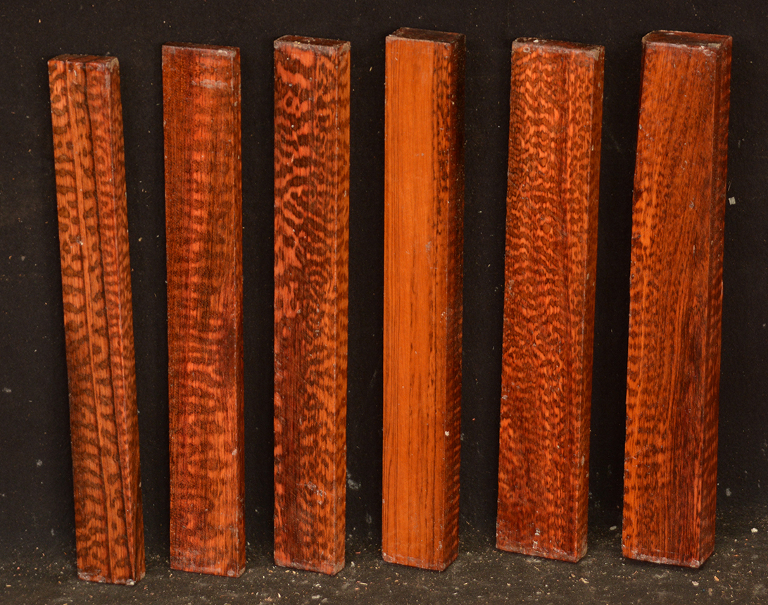 Also called Letterwood and Leopardwood. Color: dark red to reddish brown with irregular black speckles or stripes. Fine textured and highly lustrous. Very hard and heavy, 75-84 lbs/cu ft. Takes a beautiful finish. Very rare and very expensive. Guyana and Surinam.
