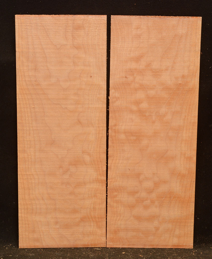 This tree is native to the Pacific Northwest. It has the distinction of having the largest leaf of the Maples-up to 15" in diameter. This is a soft Maple. The tree can produce many different types of figure, including quilted (tubular, popcorn, & cloud), curly (fiddleback, broken, & basketweave), and burl.