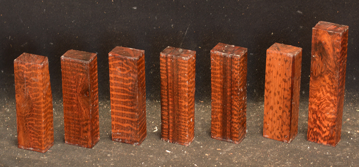 Also called Letterwood and Leopardwood. Color: dark red to reddish brown with irregular black speckles or stripes. Fine textured and highly lustrous. Very hard and heavy, 75-84 lbs/cu ft. Takes a beautiful finish. Very rare and very expensive. Guyana and Surinam.