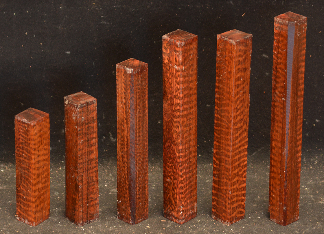 Also called Letterwood and Leopardwood. Color: dark red to reddish brown with irregular black speckles or stripes. Fine textured and highly lustrous. Very hard and heavy, 75-84 lbs/cu ft. Takes a beautiful finish. Very rare and very expensive. Guyana and Surinam.