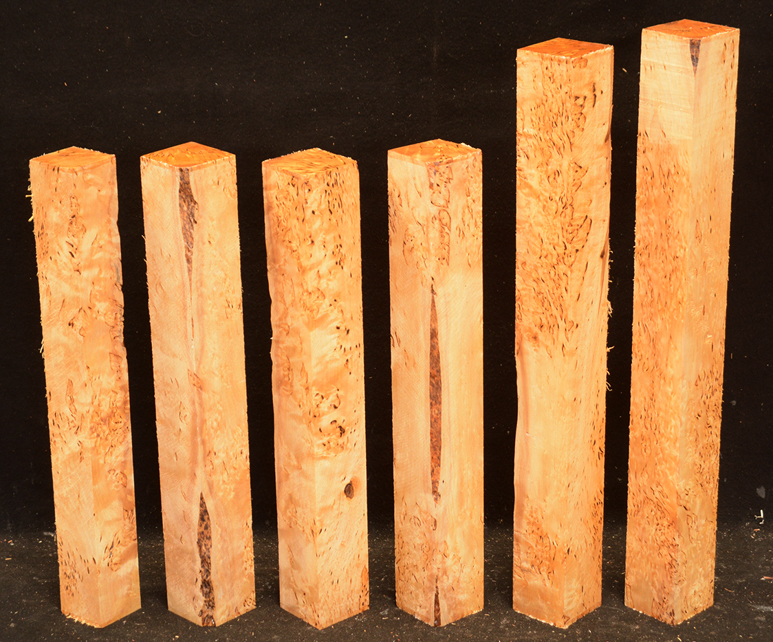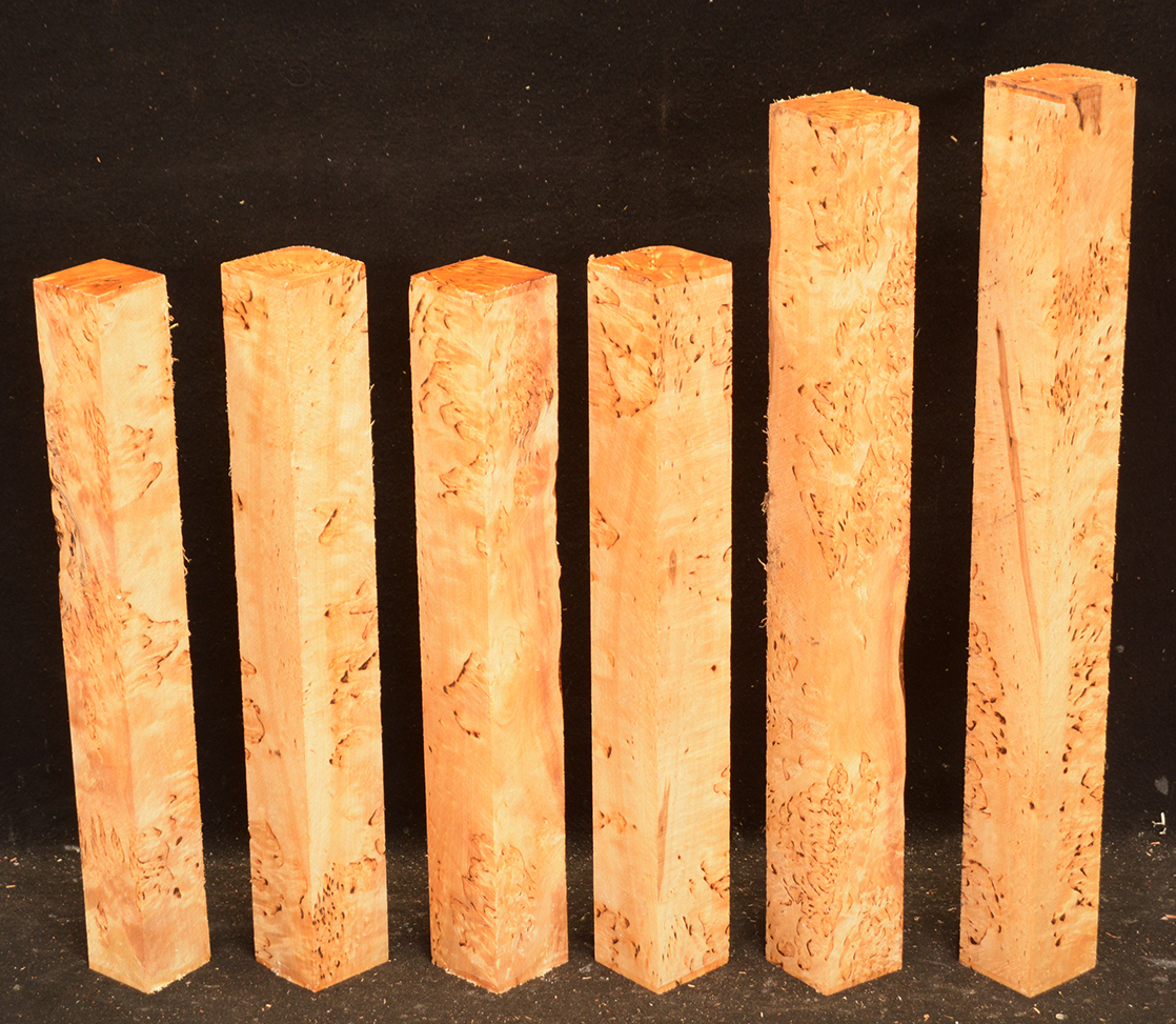 Also called Alpine Burl or Karelian Burl after the Finnish province of Karelia where it is often found. The high figure found in this wood is caused when the tree heals the damage done by an invasive boring beetle. The beetle infestation leaves the trees stunted and sometimes deformed but produces wood with small twists and swirls that highlight the darker, burly figure. Rare.