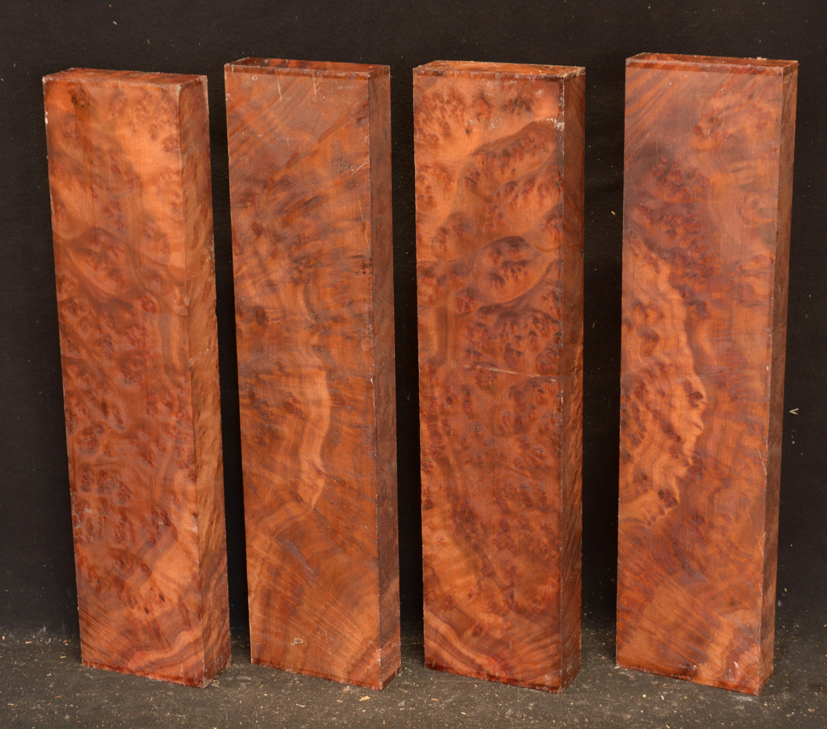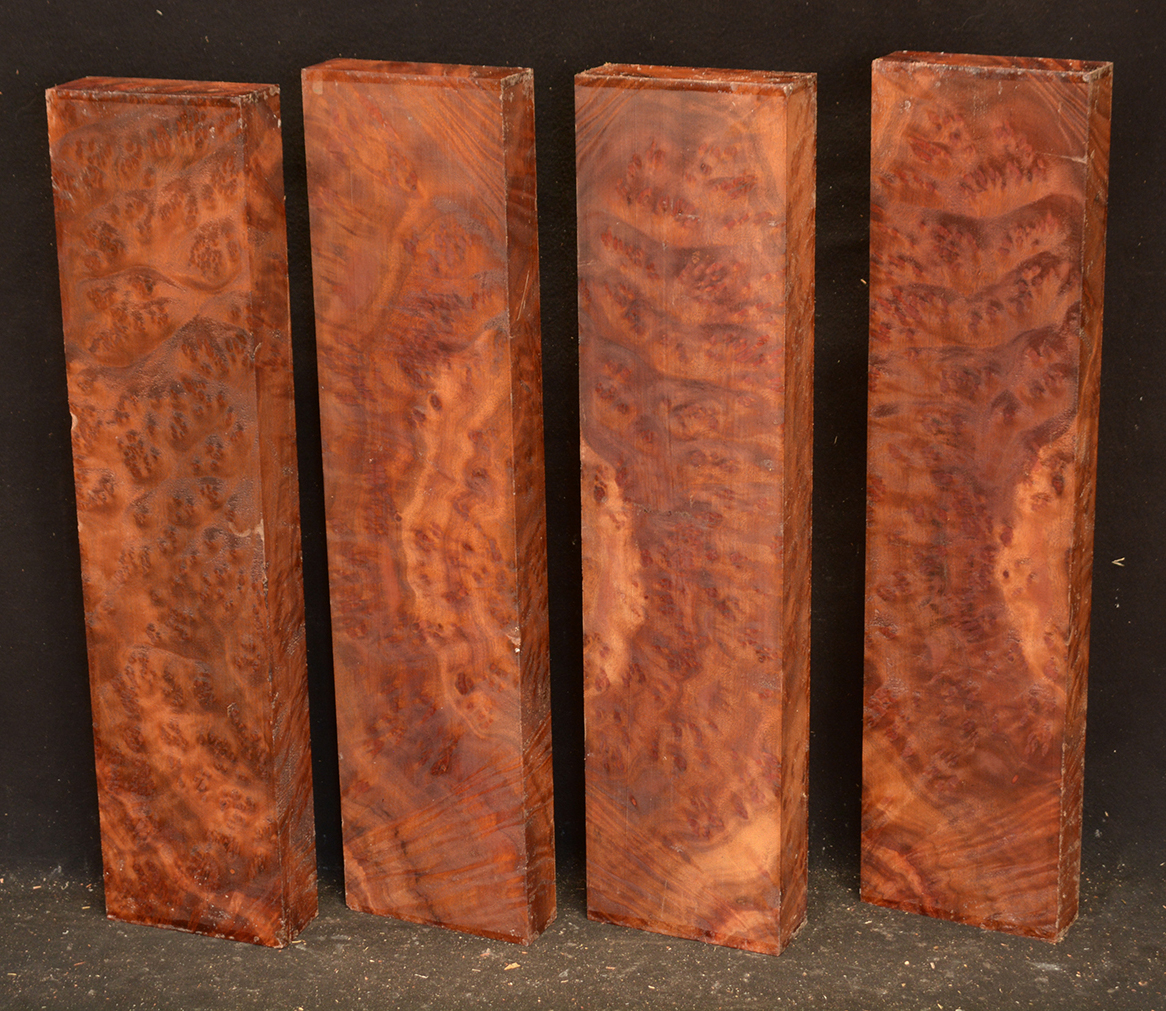 This rare burl is from S.E. Asia and is seldom seen on the world market. It is fine-grained and varies in color from a light reddish-brown to almost scarlet. It is easy to work and has a very pungent, spicy scent. For a burl it is remarkably stable. Green to partially air dried.