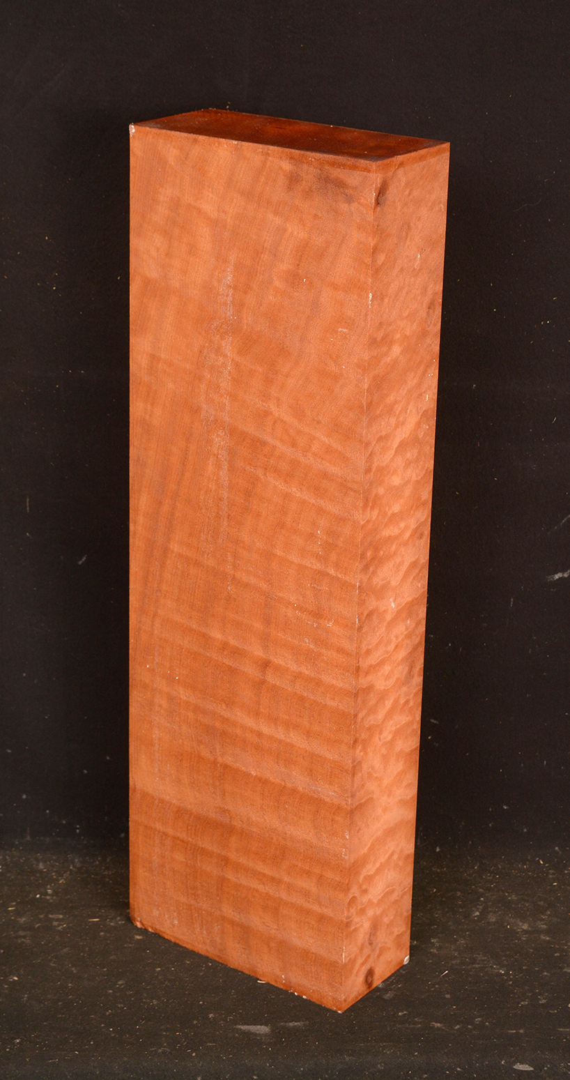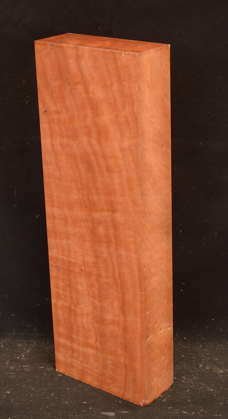 This beautifully figured board is from a log found in Gabon. The figure is a cross between pomelle and quilt-very bold. It is very fine-grained and takes a nice polish. This board was cut near the outside of the log where the figure is strongest.