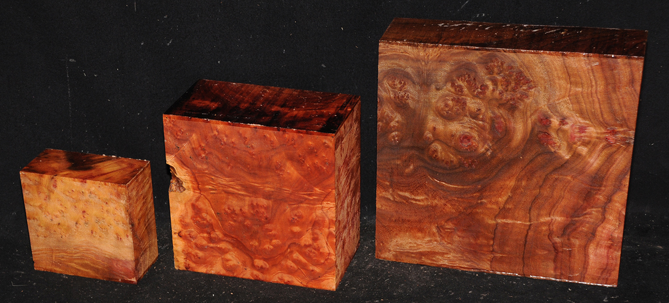 This rare burl is from S.E. Asia and is seldom seen on the world market. It is fine-grained and varies in color from a light reddish-brown to almost scarlet. It is easy to work and has a very pungent, spicy scent. For a burl it is remarkably stable. Green to partially air dried.