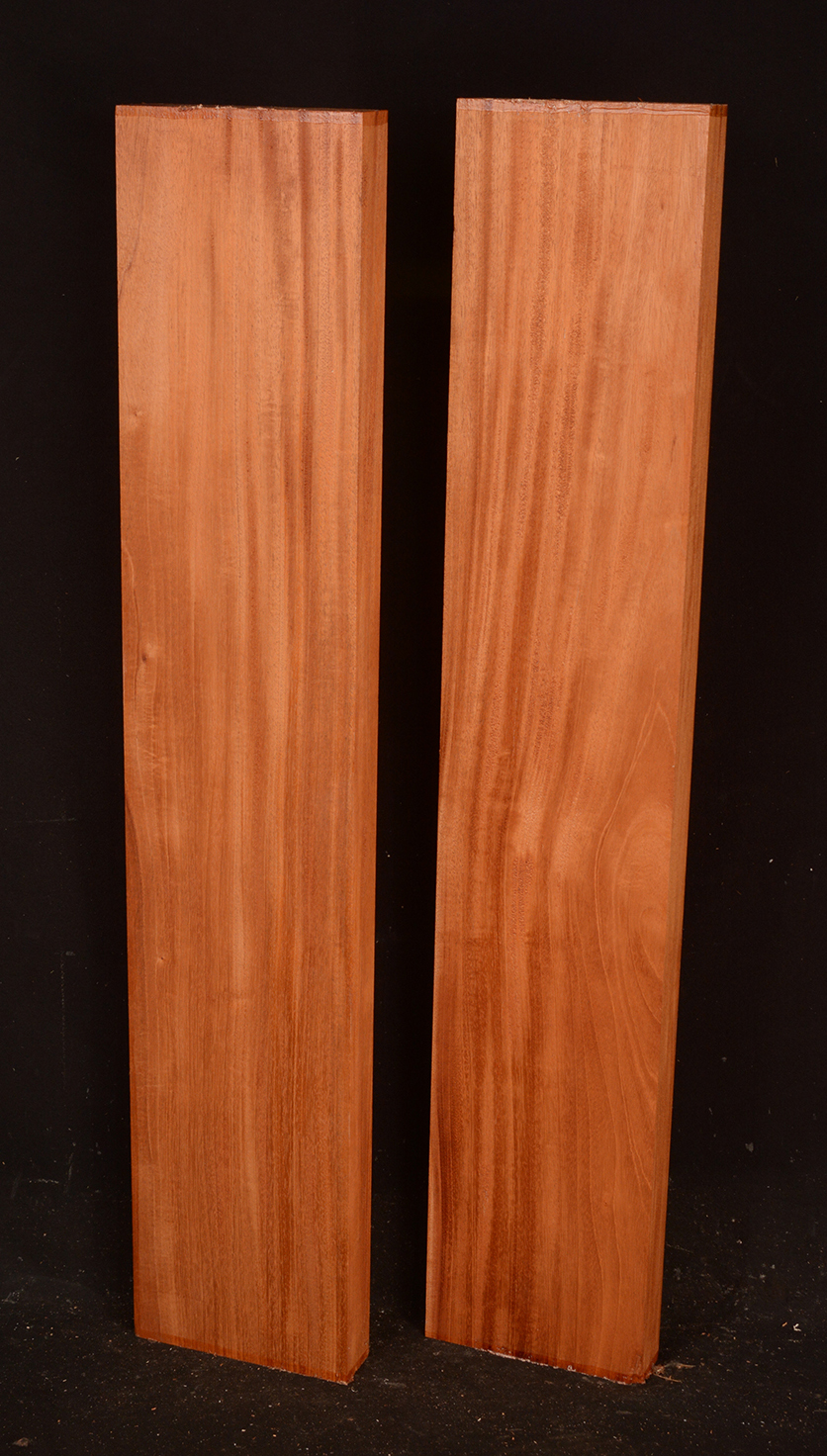 Also called Acajou, Tropical American Mahogany, and Honduras Mahogany. This medium to large tree occurs throughout Central and South America. Related to Cuban Mahogany (Swietenia mahogani) and Pacific Coast Mahogany (Swietenia humilis). It produces one of the classic furniture and cabinetmaking woods. The heartwood varies from a light reddish-brown to a rich, dark red. Generally straight grained and exceptionally stable, it is easy to machine, hand plane, sand and finish. Occasional logs produce several figures, curly, quilted, and the rare plum pudding figure which looks like large drips running down the board. Used in fine furniture and joinery, boat building, and in the guitar industry for acoustic sets and necks.